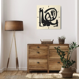Wanduhr - Glasuhr - Eine abstrakte Figur in Schwarz auf beigem Hintergrund - 30x30cm - Fast wie Picasso - Moderne Wanddekoration für Wohnzimmer und Schlafzimmer ARTTOR