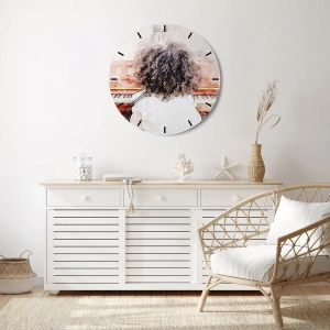 Wanduhr - Glasuhr - Ein Mädchen mit buschigem Haar am Klavier - 30x30cm - In der neuen Welt - Moderne Wanddekoration für Wohnzimmer und Schlafzimmer ARTTOR