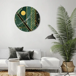 - Diese runde Glasuhr im Format 30 x 30 cm besticht durch ihr modernes Design mit grünem Hintergrund und geometrischen Goldlinien. Sie eignet sich perfekt für Wohnzimmer, Schlafzimmer oder Büro. Ihr einzigartiges Art-Déco-Design unterstreicht die Eleganz...