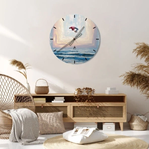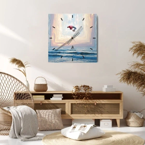 Wanduhr - Glasuhr - Eine springende Figur am Meer in einer surrealen Landschaft - 30x30cm - In eine andere Dimension - Moderne Wanddekoration für Wohnzimmer, Küche und Schlafzimmer ARTTOR