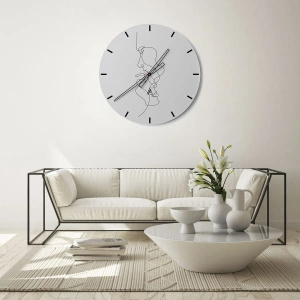 Wanduhr – Heat of Tender Desires – Minimalistische Gesichtskonturen in einer schwarzen Linie auf weißem Hintergrund