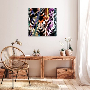 Bild auf Leinwand - Leinwandbild - Abstrakte Komposition mit farbigen Linien auf schwarzem Hintergrund - 140x50cm - Quadriert - Moderne Wanddekoration für Wohnzimmer und Schlafzimmer ARTTOR