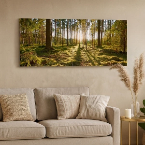 Bild auf Leinwand - Leinwandbild - Grüner Wald, beleuchtet durch Sonnenlicht auf dem Moos - 120x80cm - … Hinter den sieben Wäldern - Moderne Wanddekoration für Wohnzimmer und Schlafzimmer ARTTOR
