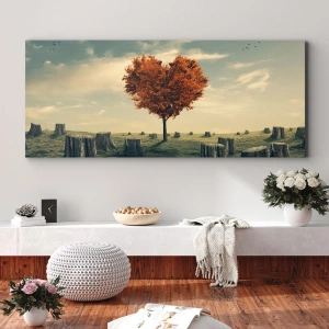 Die Leinwand wird über den Rahmen gespannt. Die Seiten und Kanten werden gedruckt, um das Bild fortzusetzen. Das Bild ist fertig zum Aufhängen an der Wand. Jedes Produkt hat einen am Rahmen befestigten Anhänger und ein Montageset (Schraube + Stift).