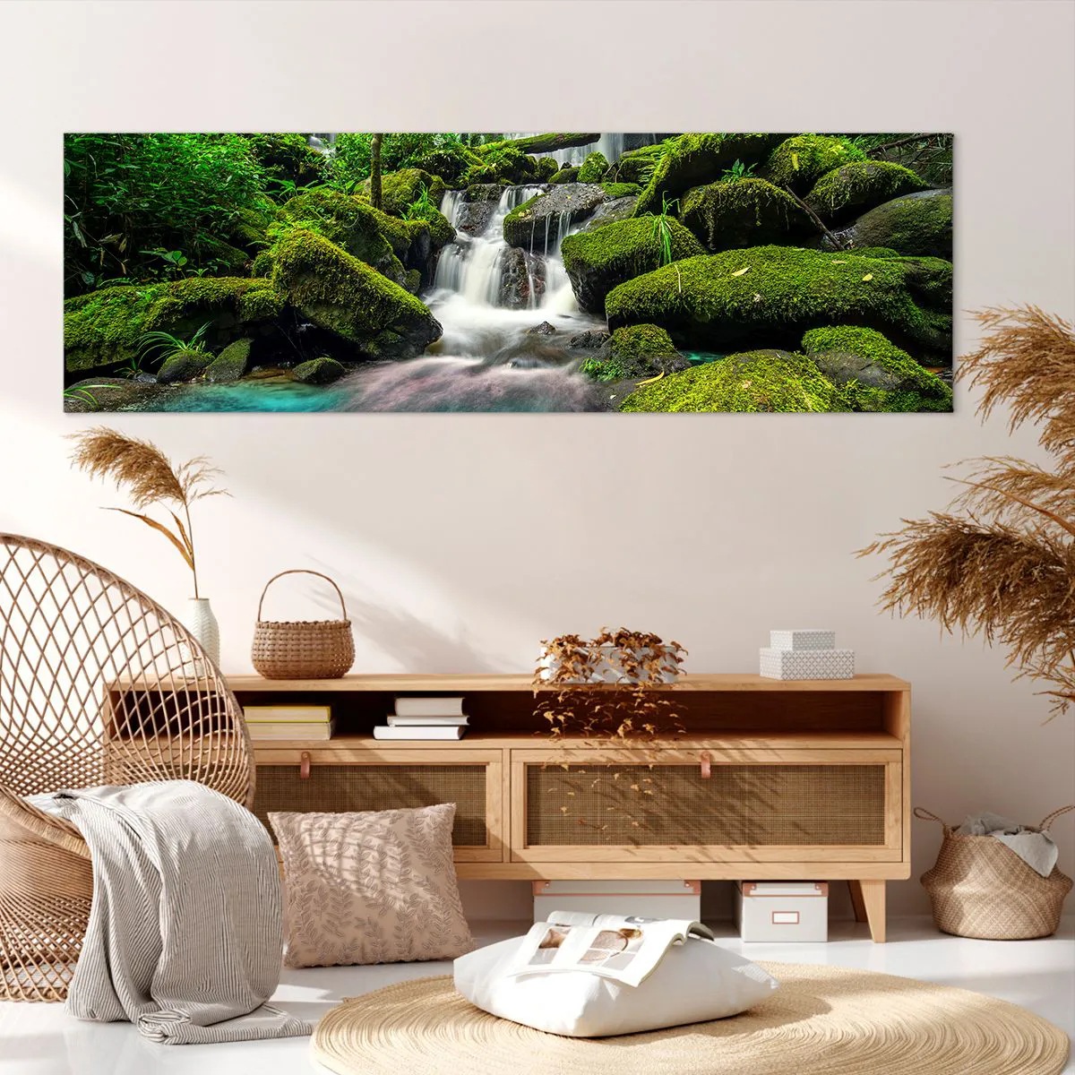 • Landschaft, Wasserfall, Gebirgsbach, Landschaften, Wälder, Natur, Für das Büro, für das Arbeitszimmer, für das Esszimmer, für das Badezimmer, für den Flur, für das Wohnzimmer, für das Schlafzimmer, Grün, Panorama