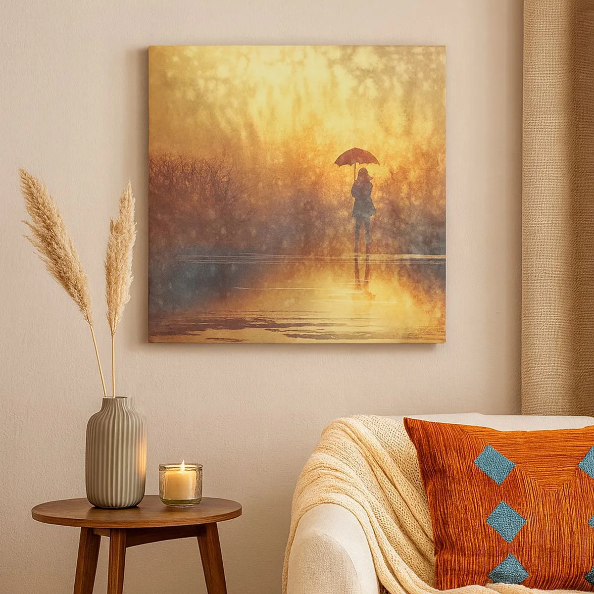 Wir verwenden ökologische, geruchslose und langlebige Tinten mit tiefer Farbsättigung. Durch moderne Drucktechnik wird der Druck präzise platziert, wobei die sichtbare Struktur der Leinwand erhalten bleibt