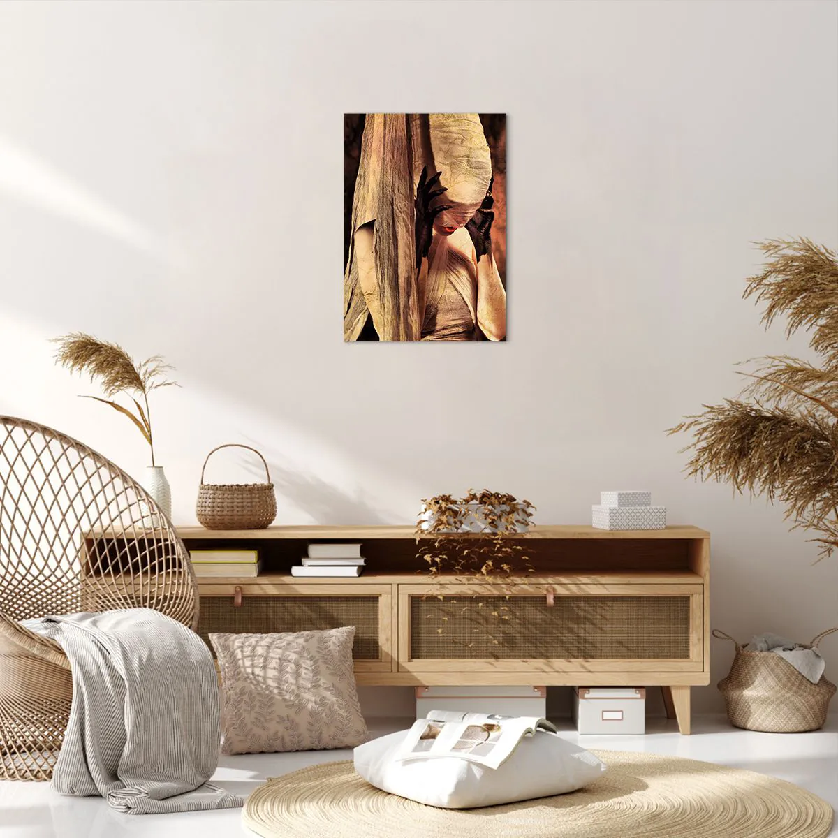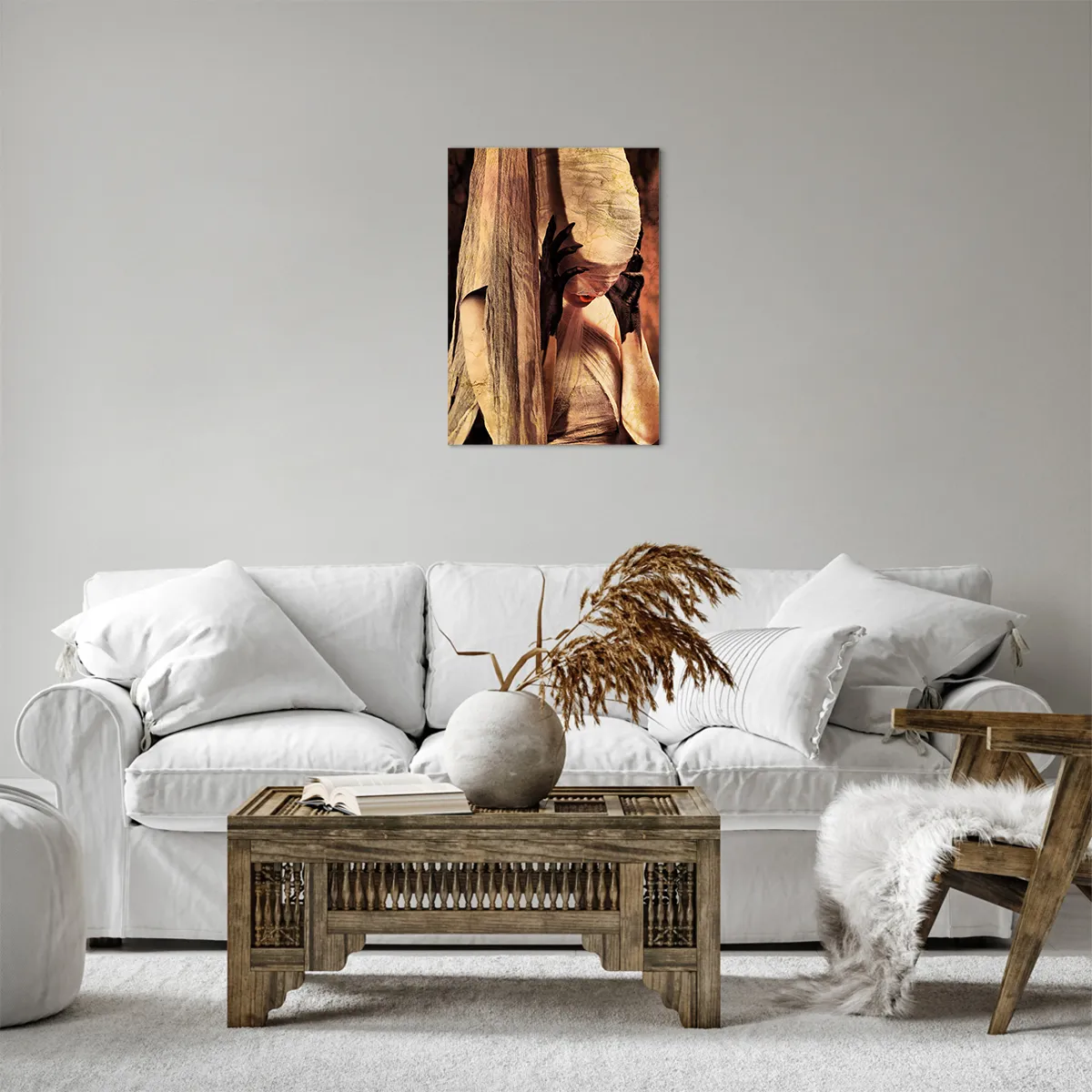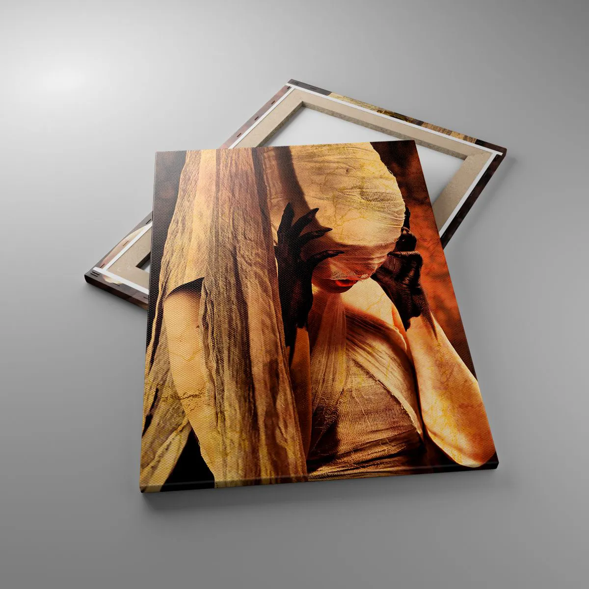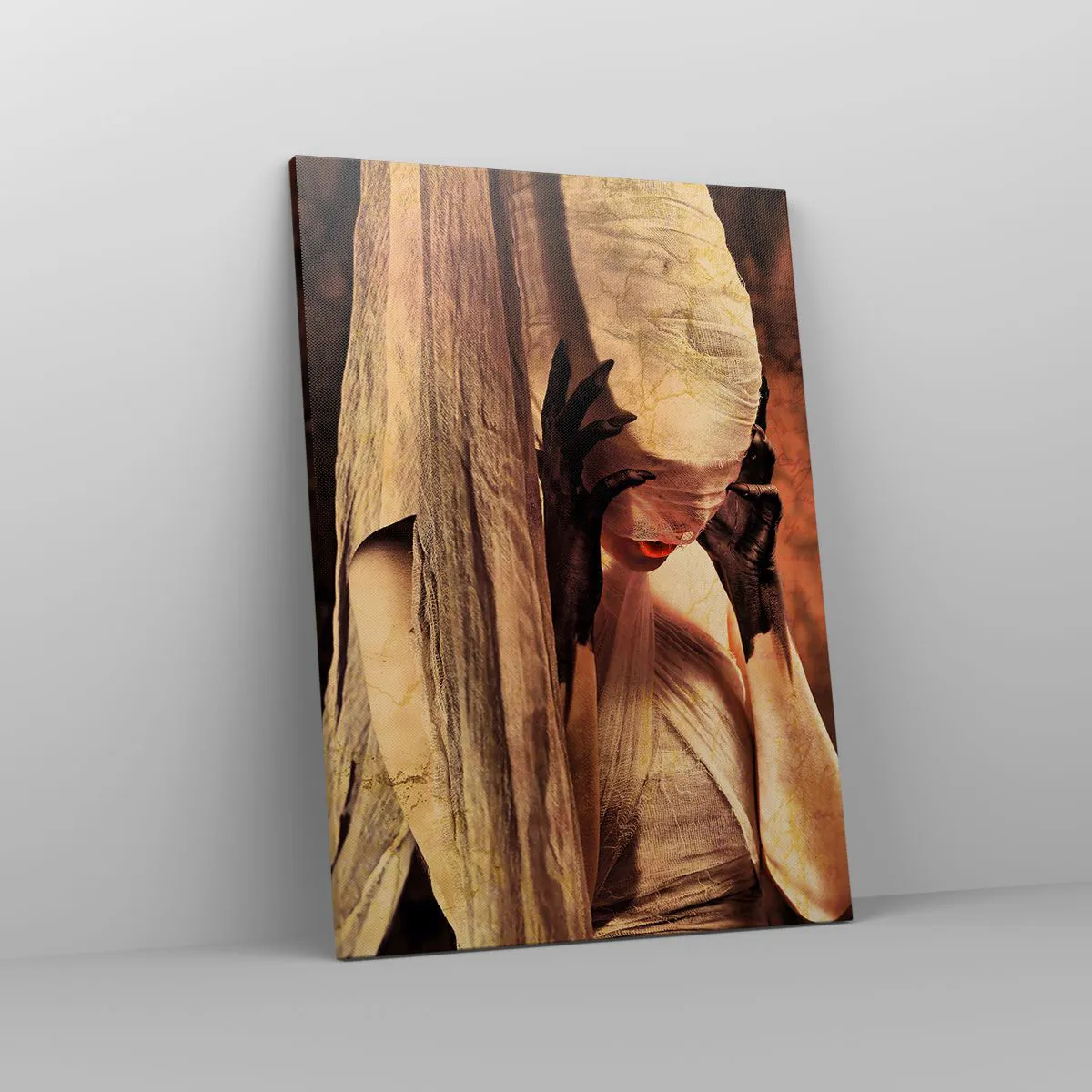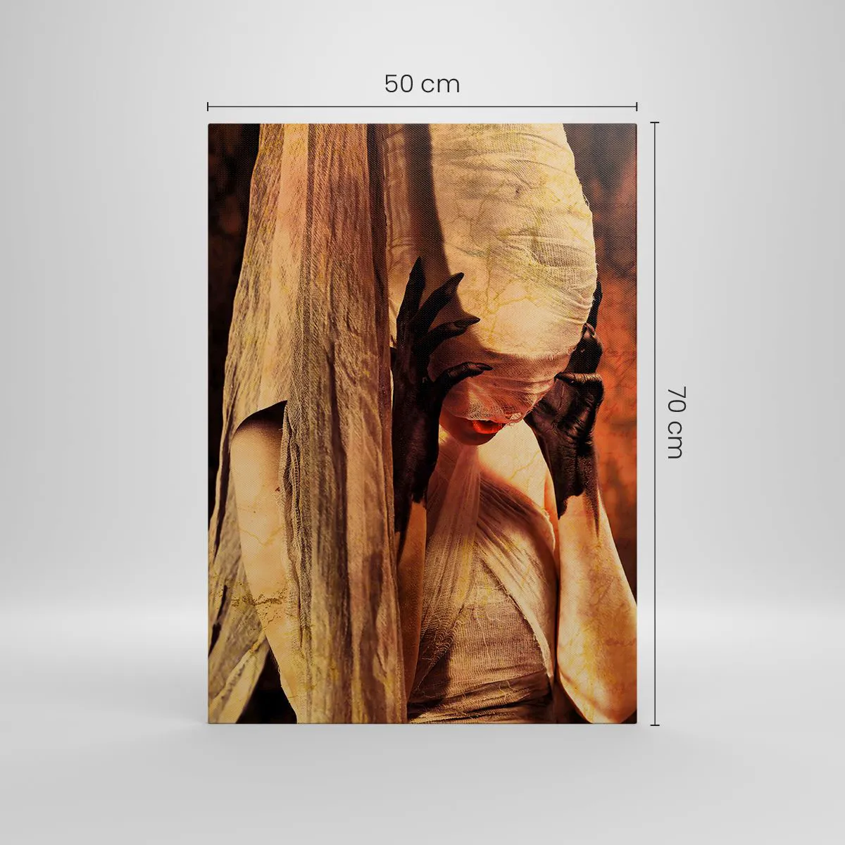 Bild auf Leinwand - Leinwandbild - Eine Frau mit Schleier und geheimnisvollem Styling vor dunklem Hintergrund - 50x70cm - Zwischen Gut und Böse - Moderne Wanddekoration für Wohnzimmer und Schlafzimmer ARTTOR