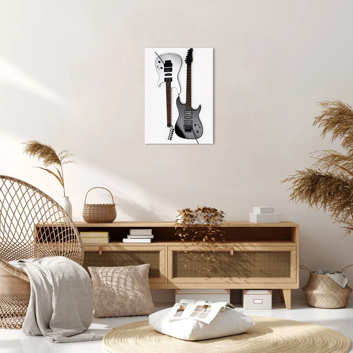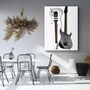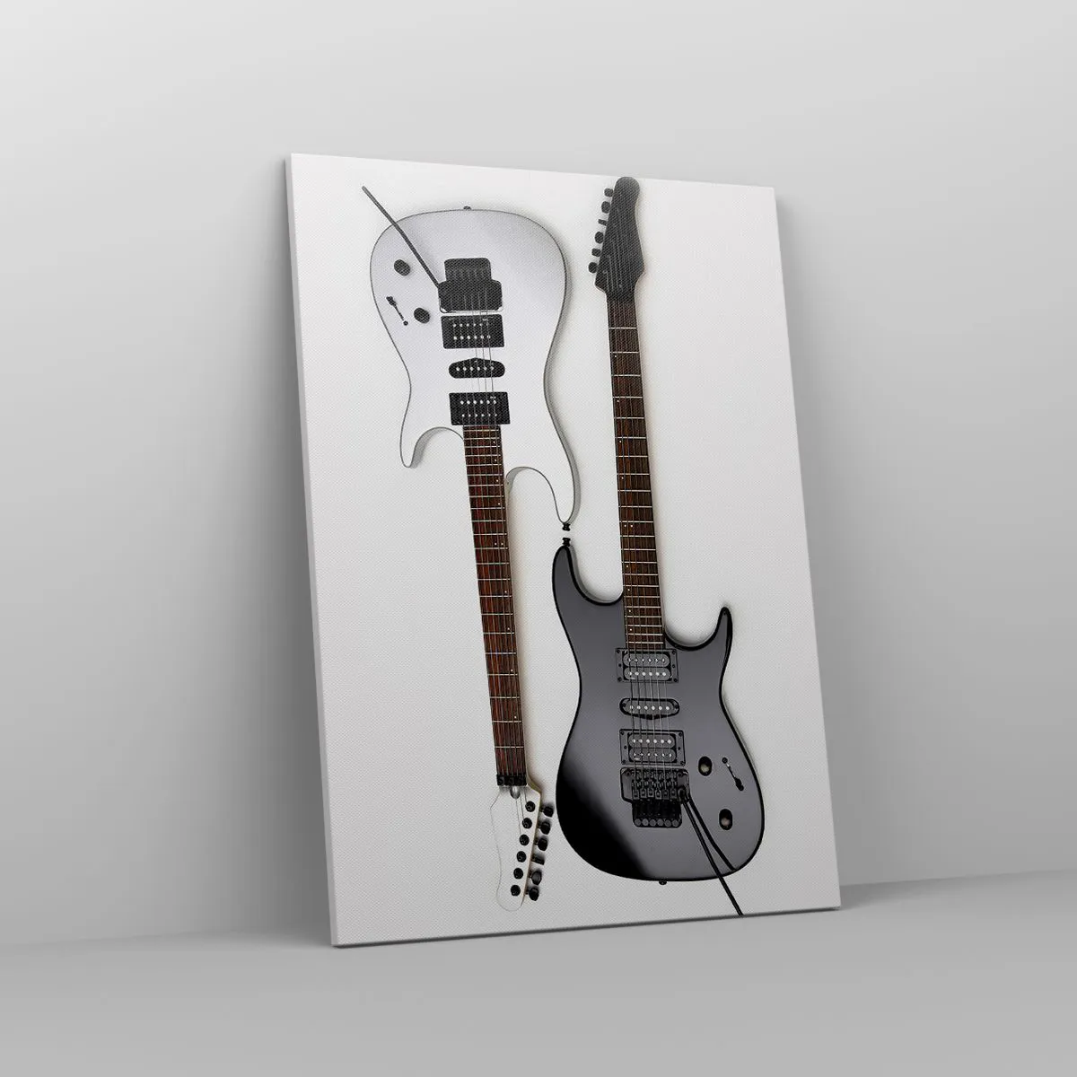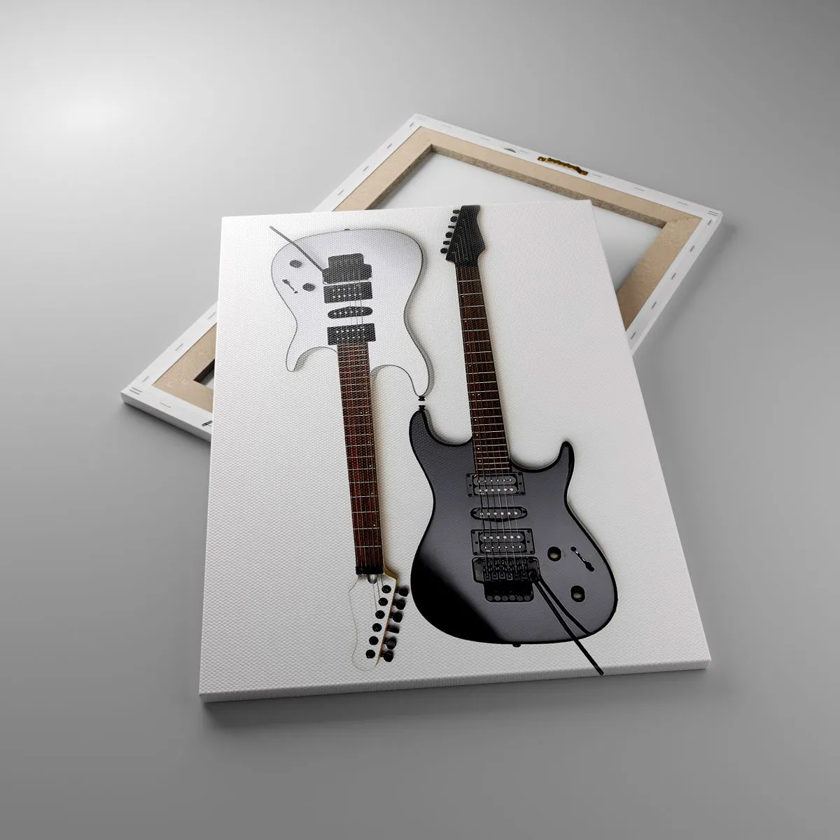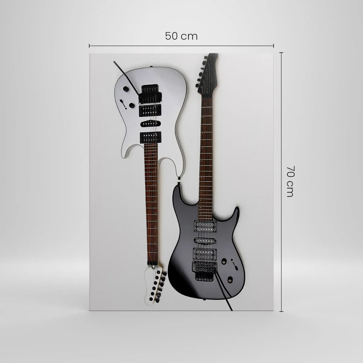 Bild auf Leinwand - Leinwandbild - Zwei E-Gitarren in Schwarz und Weiß auf hellem Hintergrund. - 50x70cm - Harmonie der Formen - Moderne Wanddekoration für Wohnzimmer und Schlafzimmer ARTTOR