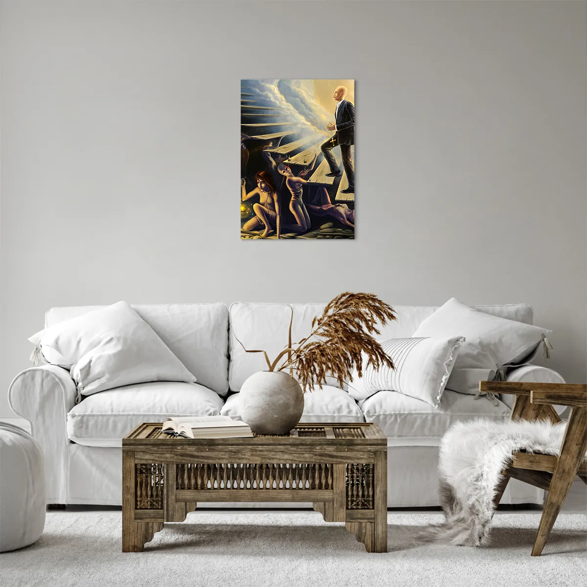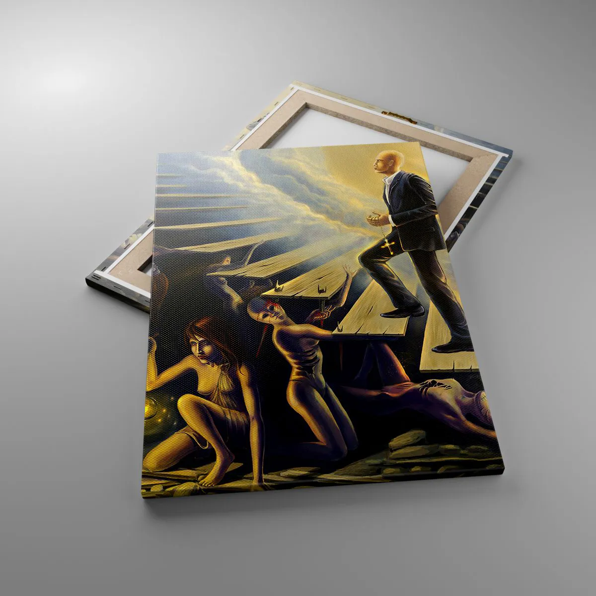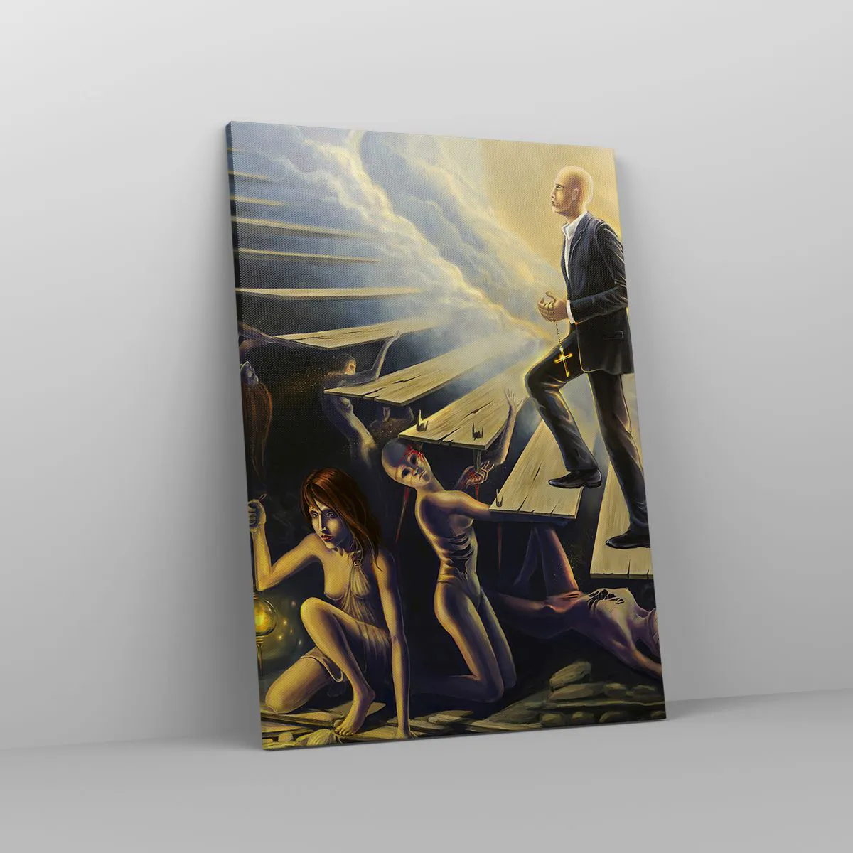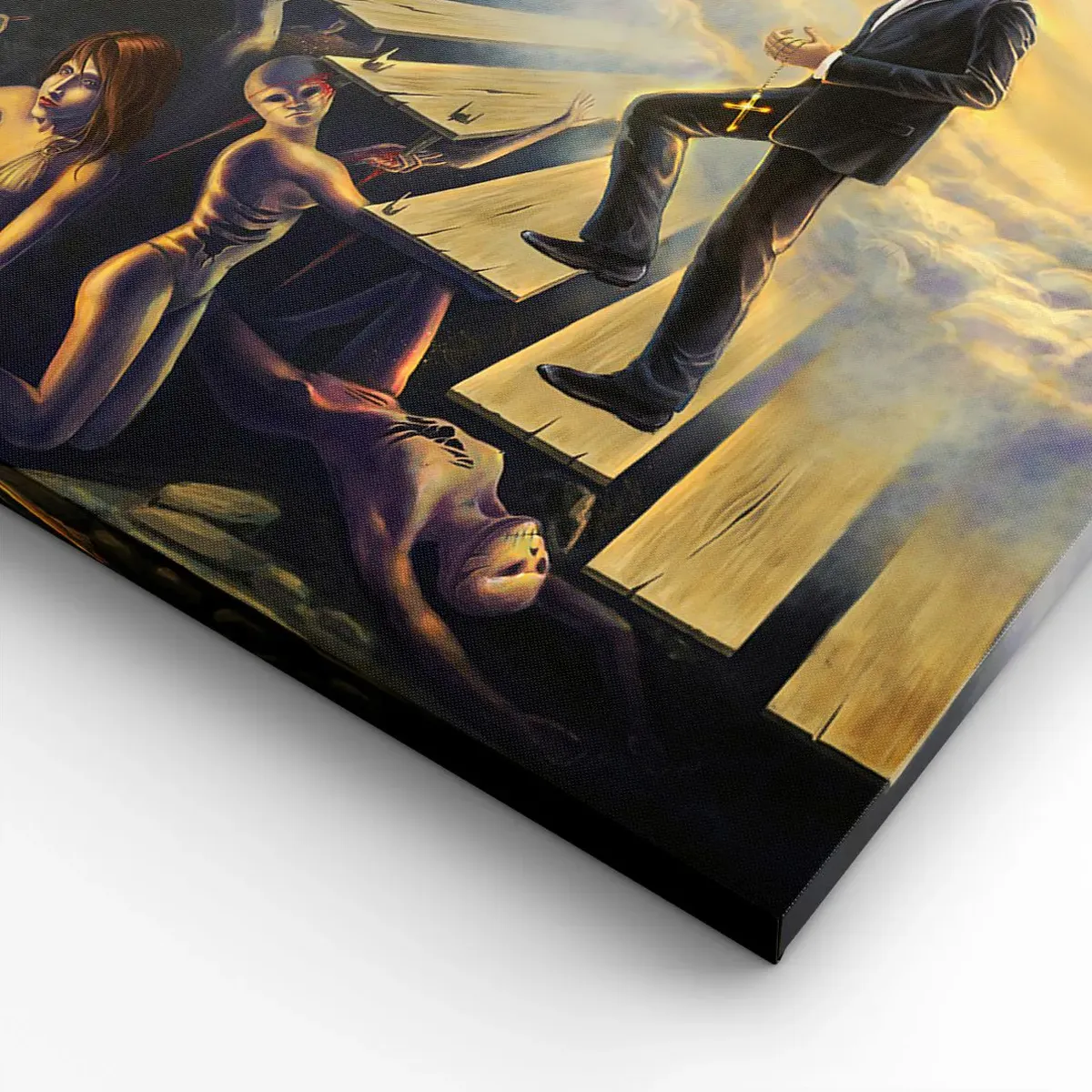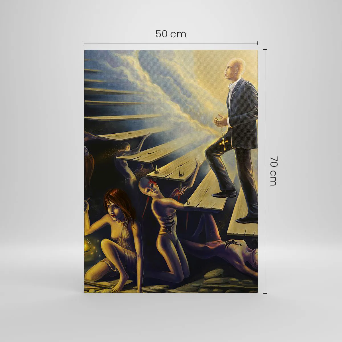 Bild auf Leinwand - Leinwandbild - Eine symbolische Szene des Weges zum Licht durch eine verfallene Treppe - 50x70cm - Danteske Reise zum Licht - Moderne Wanddekoration für Wohnzimmer und Schlafzimmer ARTTOR