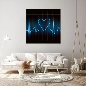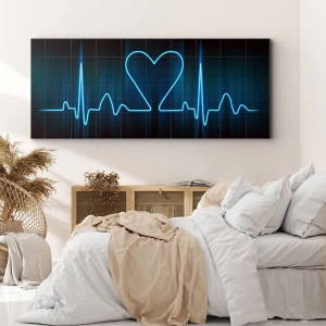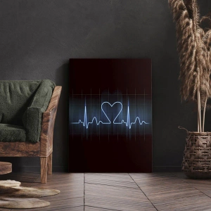 Bild auf Leinwand - Leinwandbild - Eine Lebenslinie mit einem Herz auf einem medizinischen Überwachungshintergrund in Blautönen. - 50x70cm - Im Rhythmus des Herzens - Moderne Wanddekoration für Wohnzimmer und Schlafzimmer ARTTOR