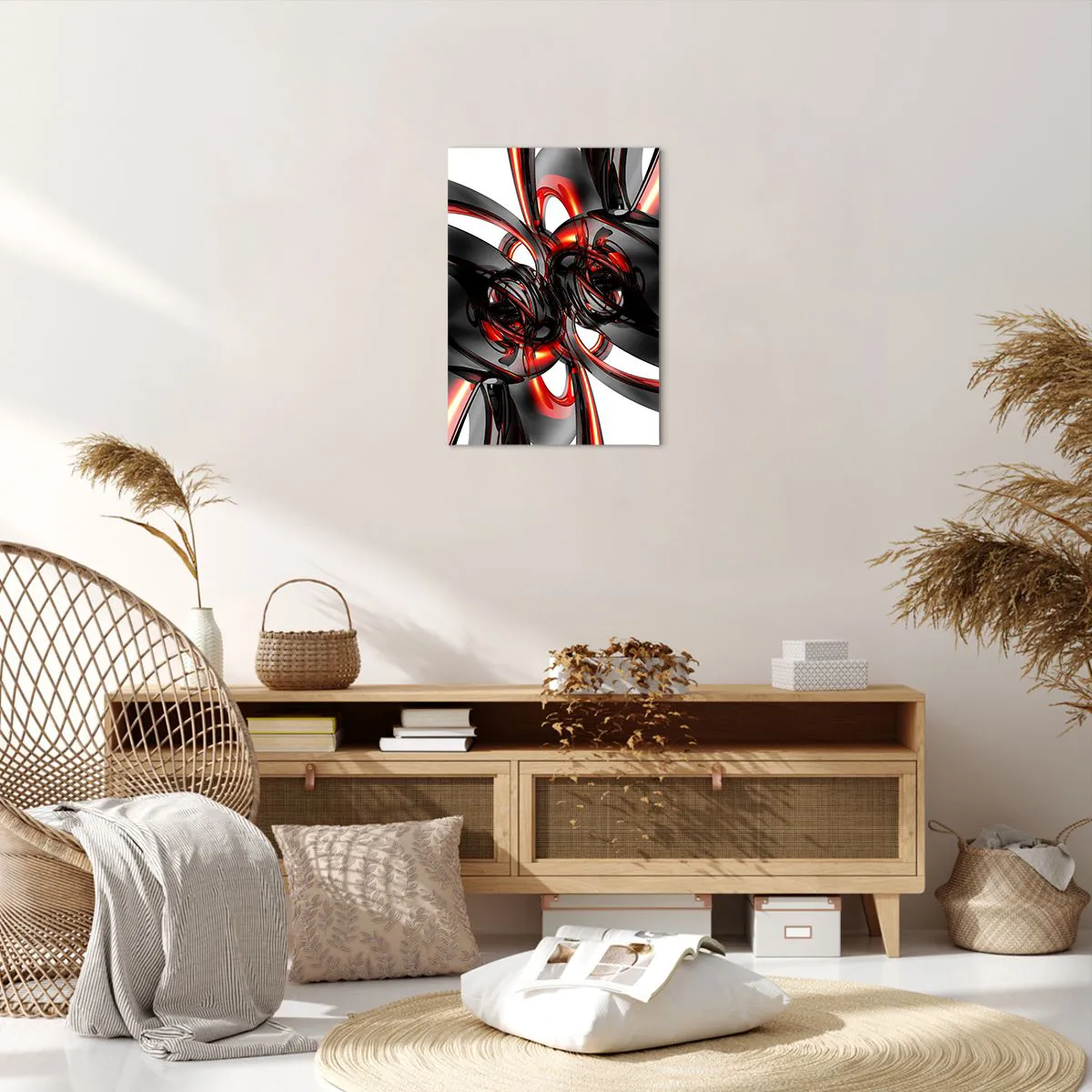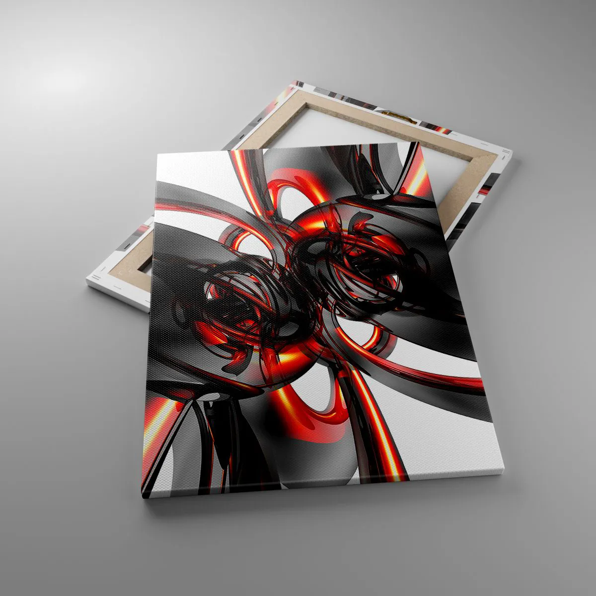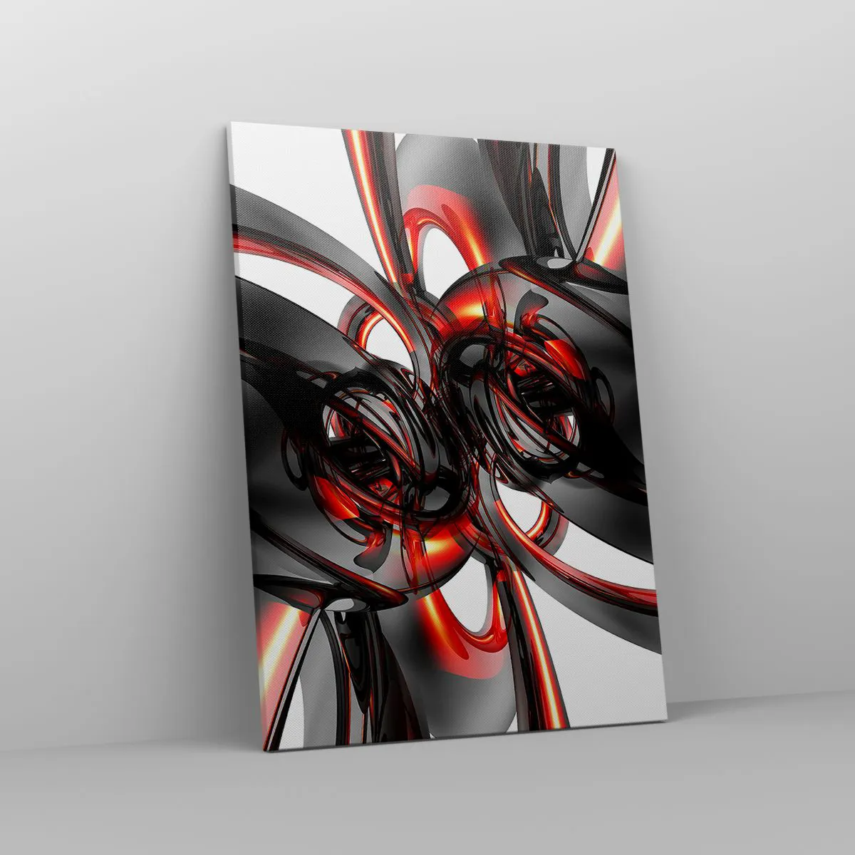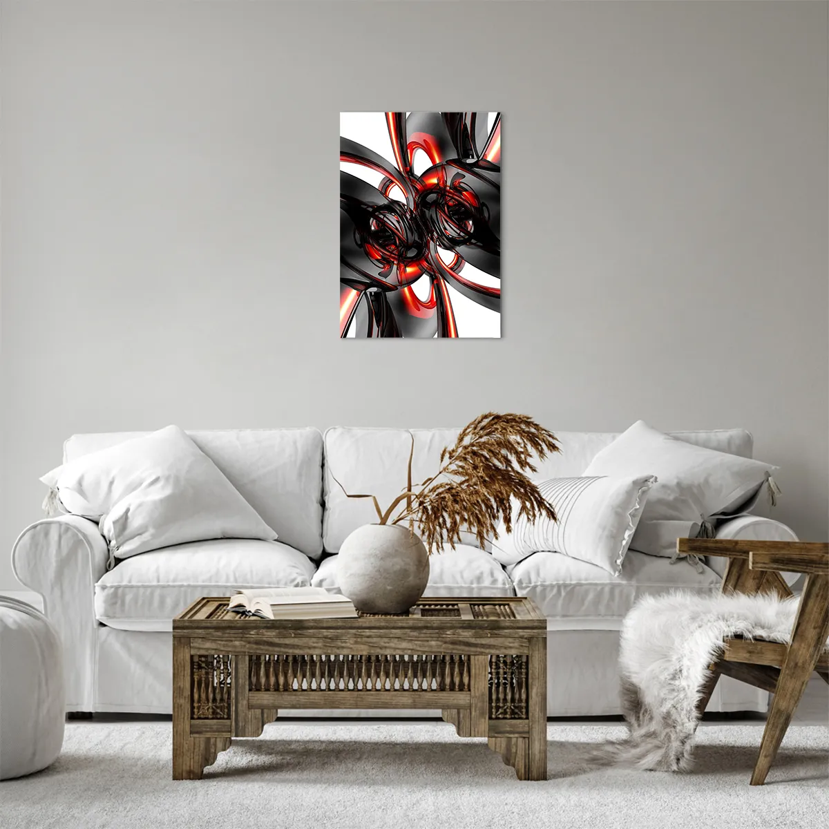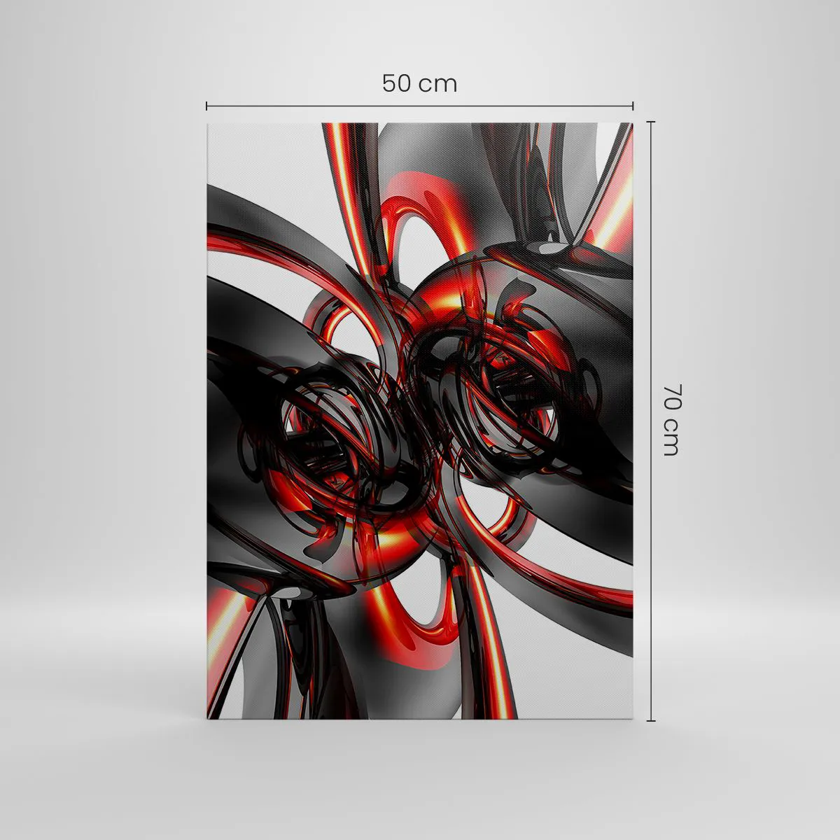 Bild auf Leinwand - Leinwandbild - Abstrakte 3D-Grafiken mit schwarzen und roten Elementen - 50x70cm - Uhrwerk in Graphit und Rot - Moderne Wanddekoration für Wohnzimmer und Schlafzimmer ARTTOR