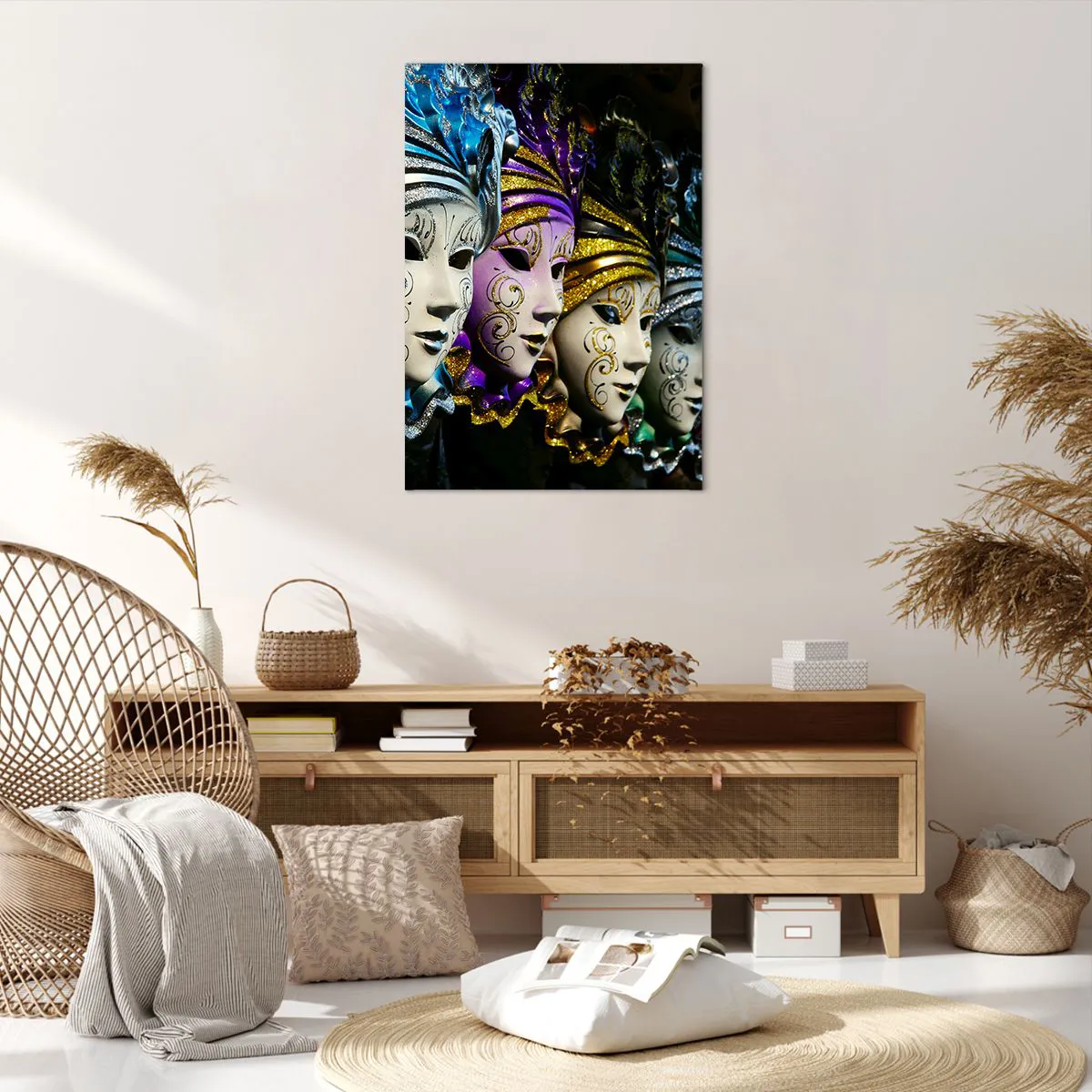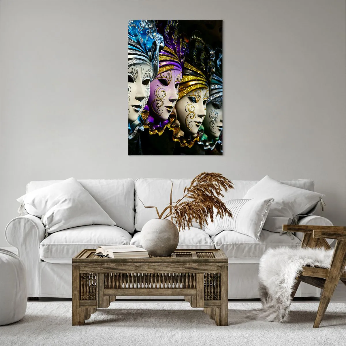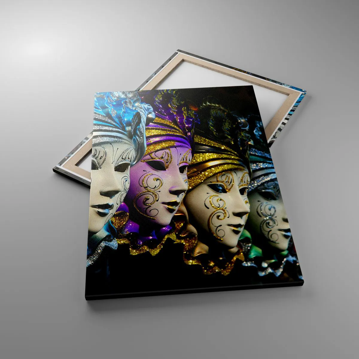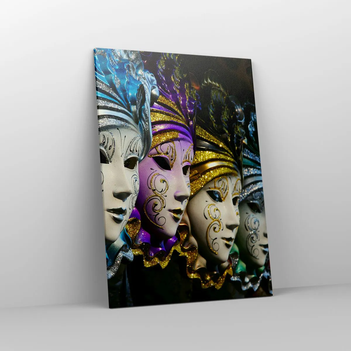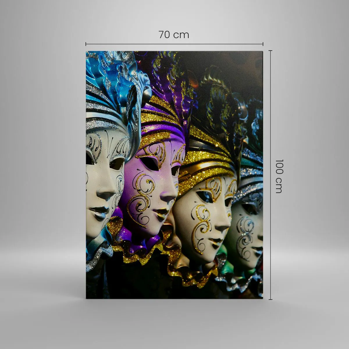 Bild auf Leinwand - Leinwandbild - Venezianische Masken in verschiedenen Farben mit dekorativen Mustern - 70x100cm - Geheimnis in Gold und Silber - Moderne Wanddekoration für Wohnzimmer und Schlafzimmer ARTTOR