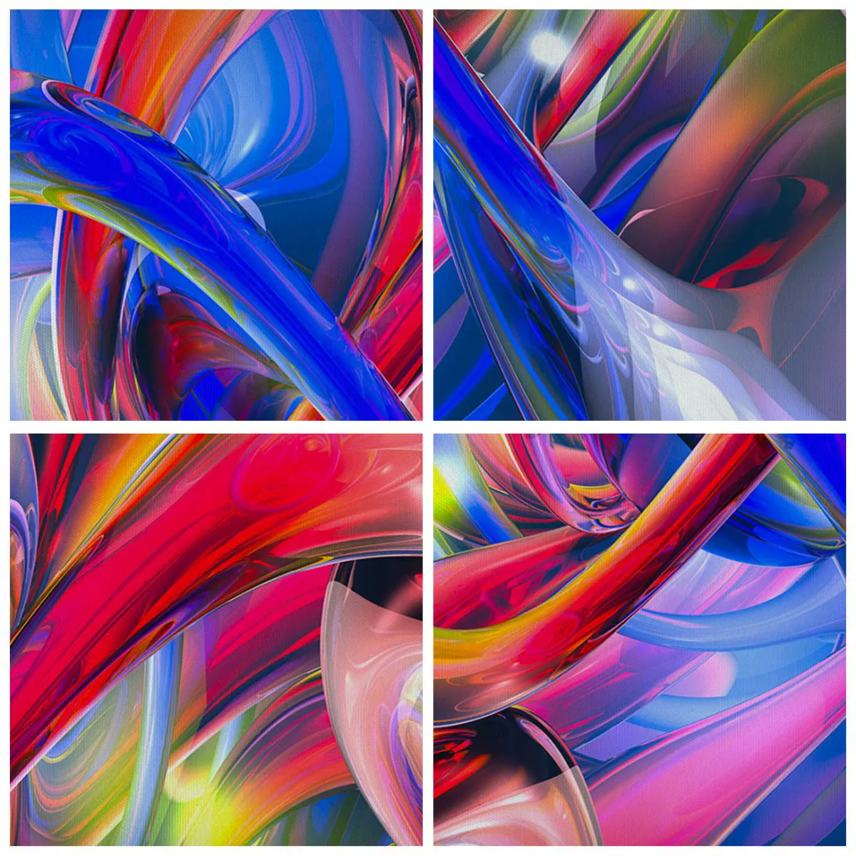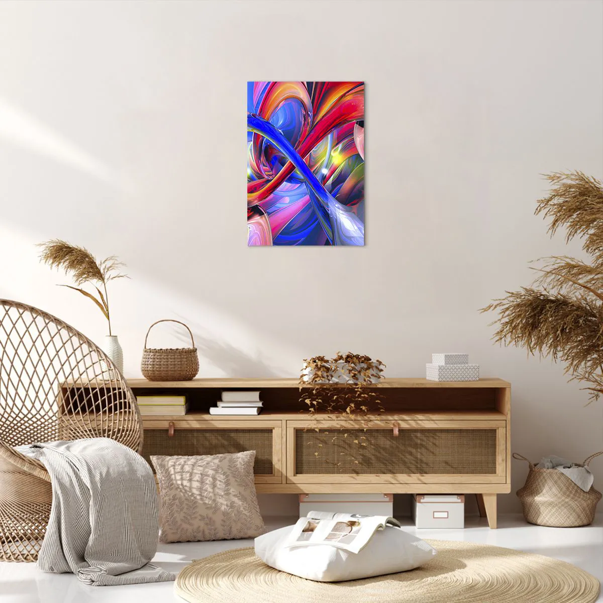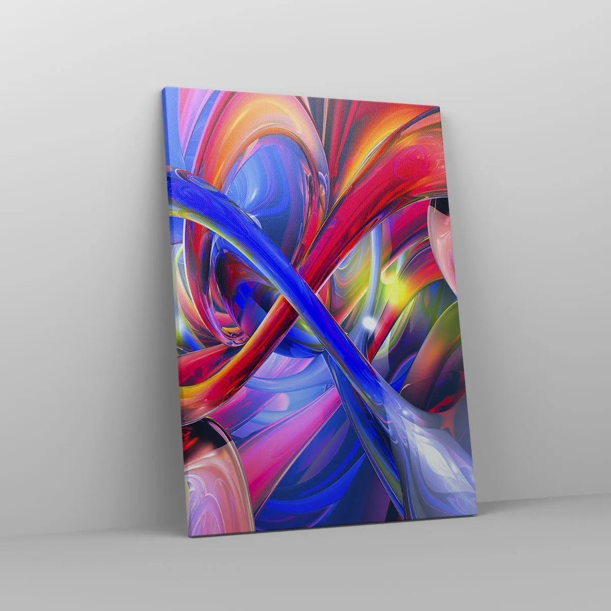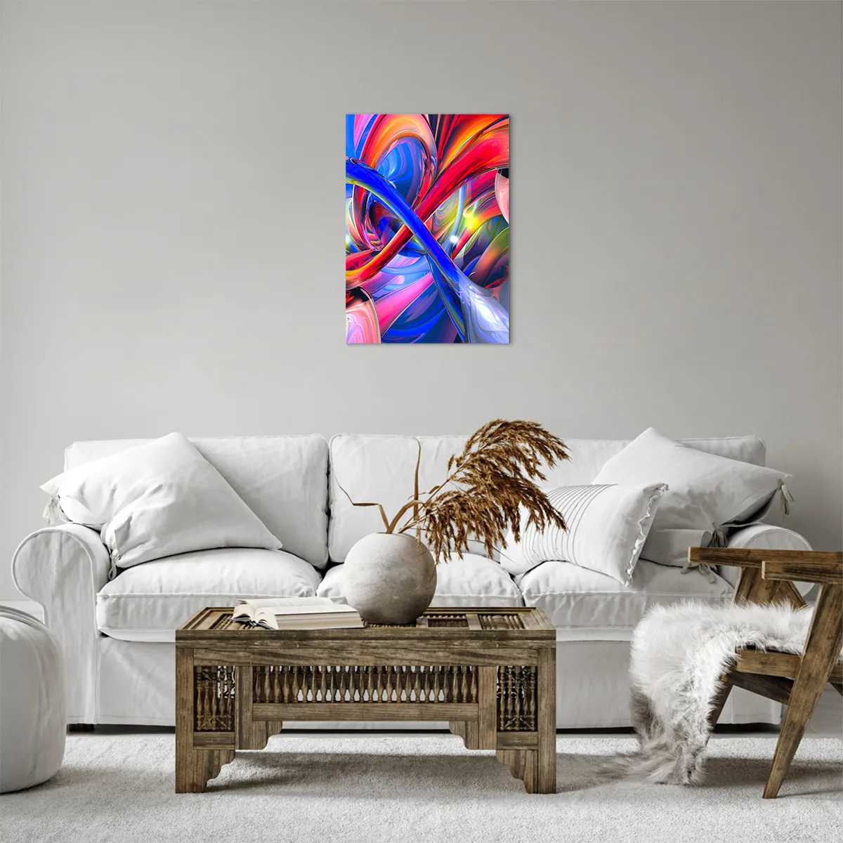 Bild auf Leinwand - Leinwandbild - Abstrakte, farbenfrohe geometrische Kompositionen in dynamischen Formen - 50x70cm - Ein Tanz der Farben - Moderne Wanddekoration für Wohnzimmer und Schlafzimmer ARTTOR