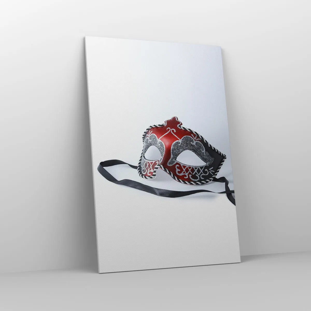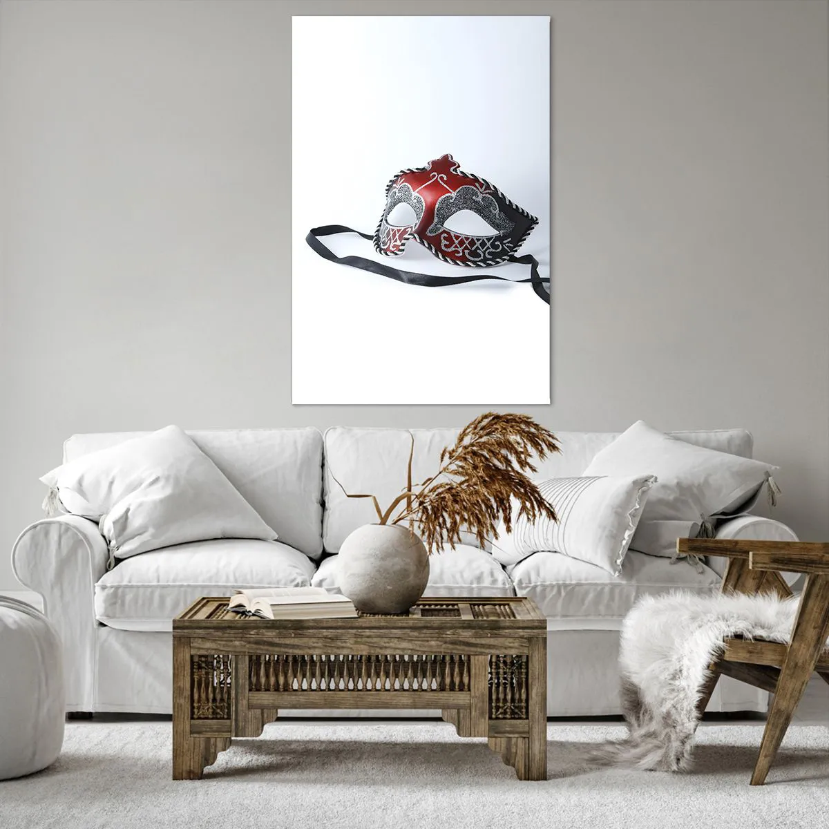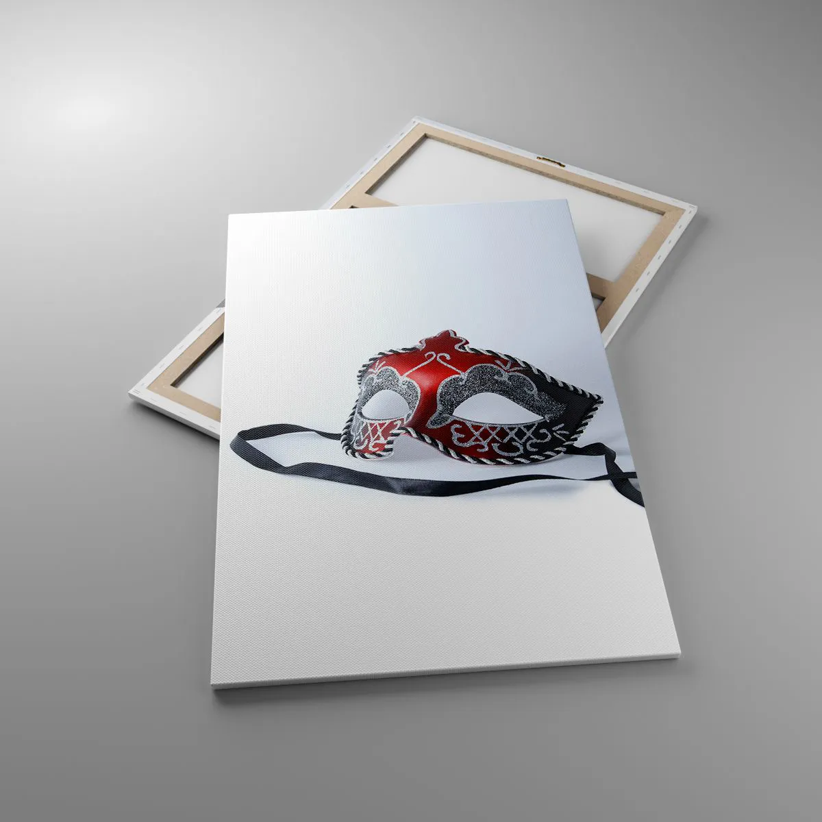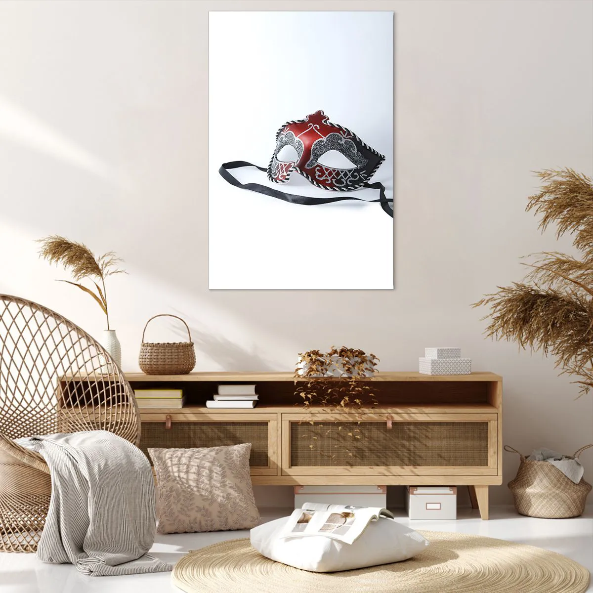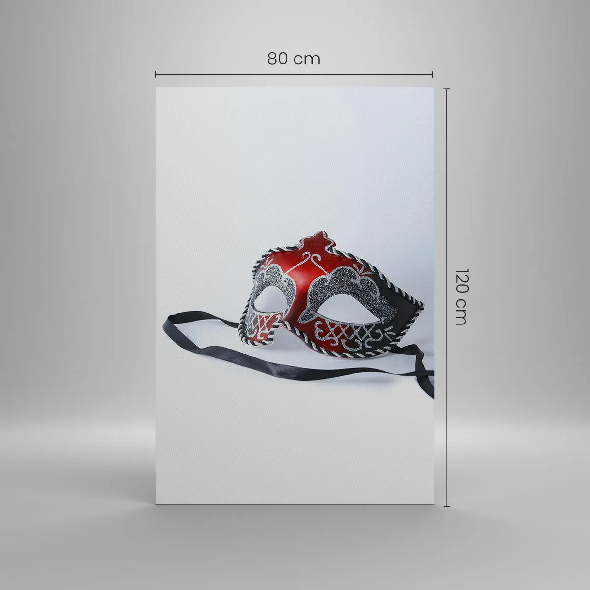 Bild auf Leinwand - Leinwandbild - Rote Karnevalsmaske auf hellem Hintergrund - 80x120cm - Einladung zum Abschlussball - Moderne Wanddekoration für Wohnzimmer und Schlafzimmer ARTTOR