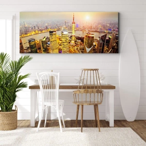 Bild auf Leinwand - Leinwandbild - Stadtpanorama mit Wolkenkratzern bei Sonnenuntergang - 50x70cm - Asiatischer Traum - Moderne Wanddekoration für Wohnzimmer und Schlafzimmer ARTTOR