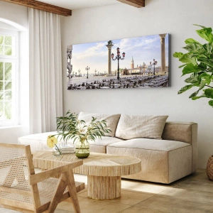 Bild auf Leinwand - Leinwandbild - Venedig, Blick auf den Platz mit Säulen und Cafétischen - 80x120cm - Wir laden Sie ein, alles ist bereit - Moderne Wanddekoration für Wohnzimmer und Schlafzimmer ARTTOR