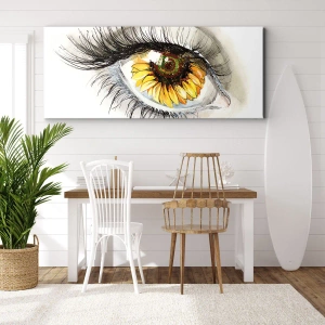 Bild auf Leinwand - Leinwandbild - Künstlerisches Auge mit sonnenblumenförmiger Iris - 50x70cm - Ein Look so heiß wie der Sommer - Moderne Wanddekoration für Wohnzimmer und Schlafzimmer ARTTOR