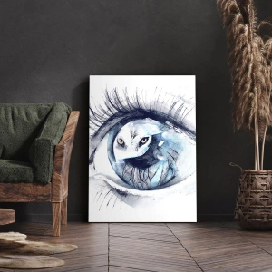 Bild auf Leinwand - Leinwandbild - Ein Auge mit dem Bild einer Eule in Aquarell-Blautönen - 50x70cm - Auge in Auge mit Wildheit - Moderne Wanddekoration für Wohnzimmer und Schlafzimmer ARTTOR