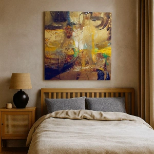 Die Leinwand wird über den Rahmen gespannt. Die Seiten und Kanten werden gedruckt, um das Bild fortzusetzen. Das Bild ist fertig zum Aufhängen an der Wand. Jedes Produkt hat einen am Rahmen befestigten Anhänger und ein Montageset (Schraube + Stift).