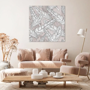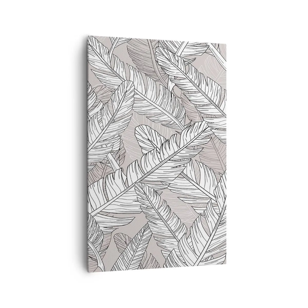 Bild auf Leinwand - Leinwandbild - Schwarz-weißes Muster mit Bananenblättern auf hellem Hintergrund - 80x120cm - Ein Federwirbel - Moderne Wanddekoration für Wohnzimmer und Schlafzimmer ARTTOR