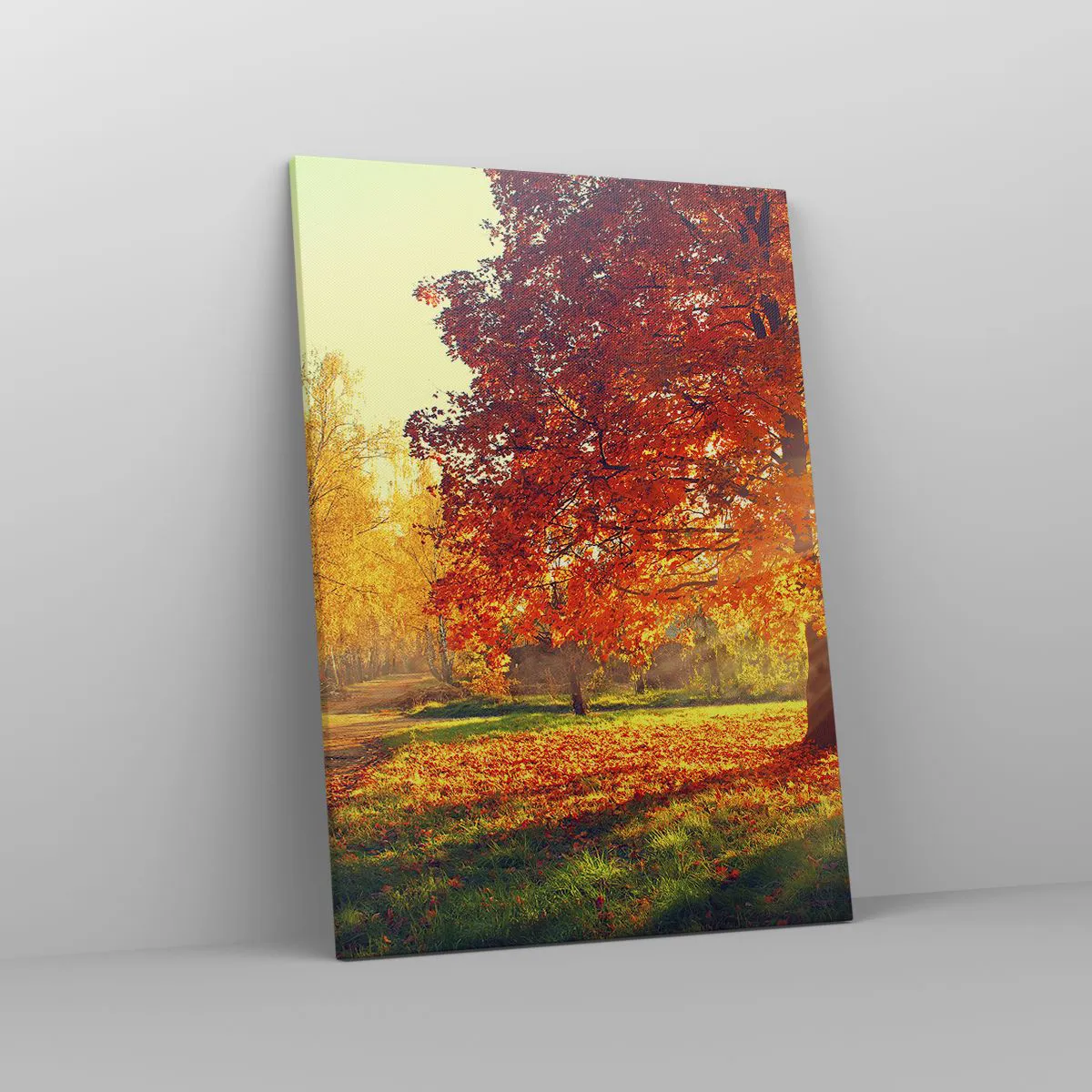 Bild auf Leinwand - Leinwandbild - Herbstpark im Sonnenlicht - 50x70cm - Unhöflich ist schön - Moderne Wanddekoration für Wohnzimmer und Schlafzimmer ARTTOR