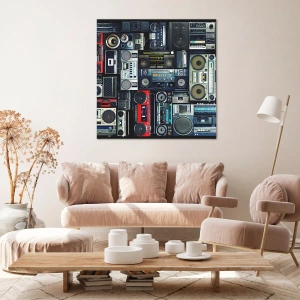 Bild auf Leinwand - Leinwandbild - Eine Collage aus Retro-Tonbandgeräten und Vintage-Lautsprechern. - 50x70cm - Sehnsucht nach den 1980er Jahren - Moderne Wanddekoration für Wohnzimmer und Schlafzimmer ARTTOR