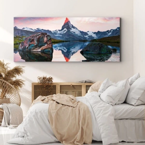 Bild auf Leinwand - Leinwandbild - Ein Berggipfel spiegelt sich bei Sonnenuntergang in einem See - 50x70cm - Das Herz der Berge ist heiß - Moderne Wanddekoration für Wohnzimmer und Schlafzimmer ARTTOR