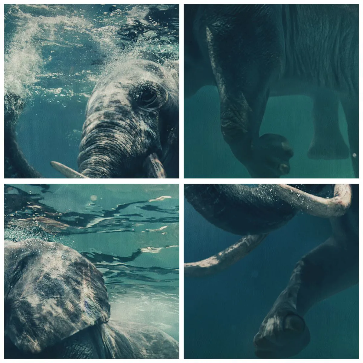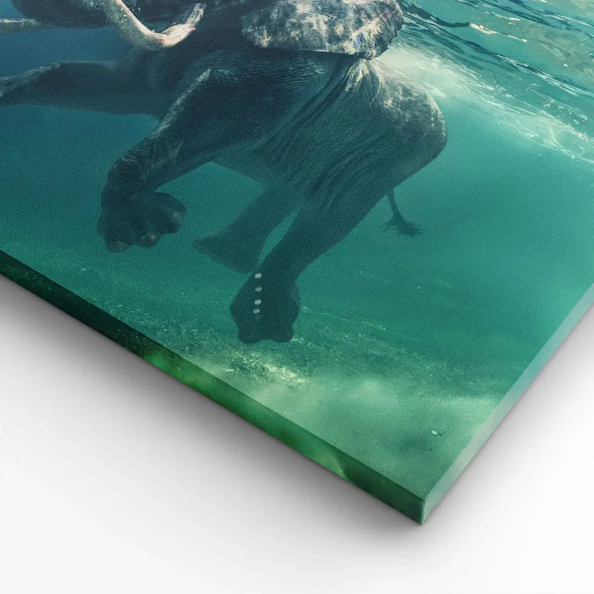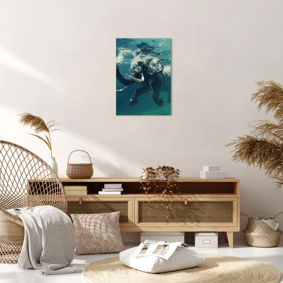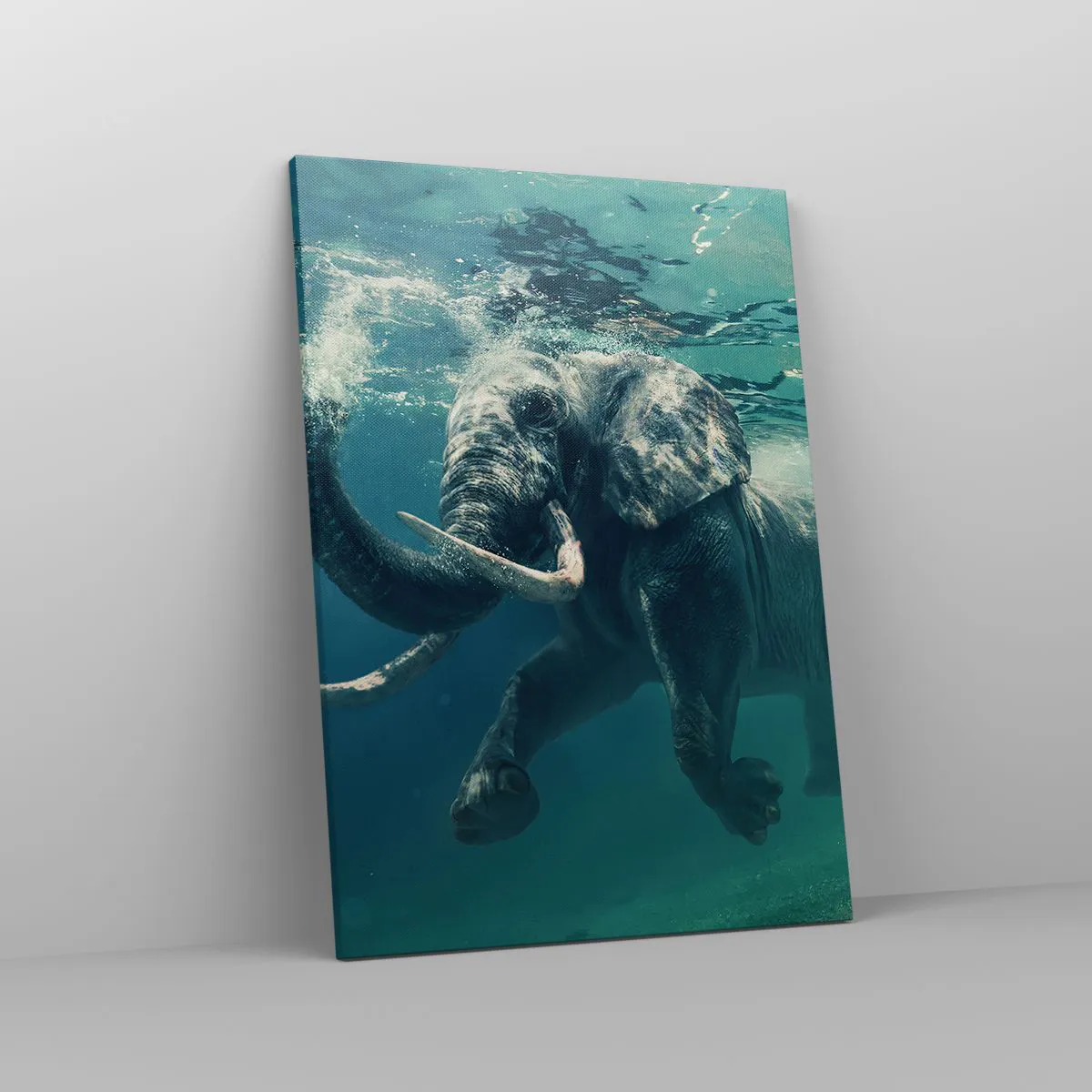 Bild auf Leinwand - Leinwandbild - Ein Elefant schwimmt unter Wasser in den türkisfarbenen Tiefen - 50x70cm - Jeder schwimmt gerne - Moderne Wanddekoration für Wohnzimmer und Schlafzimmer ARTTOR