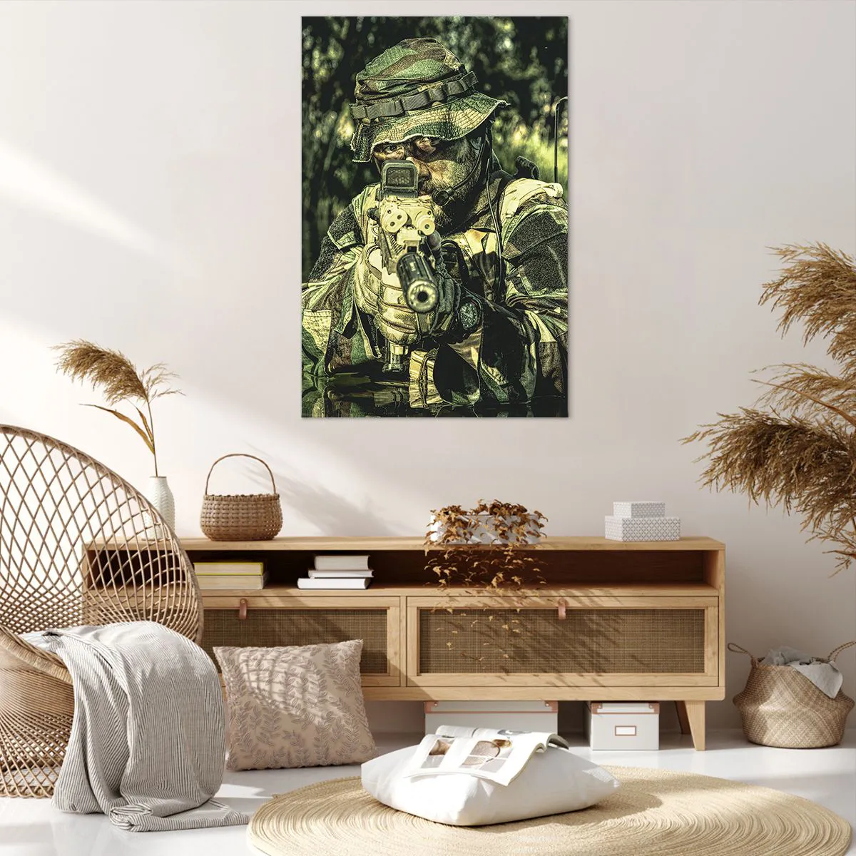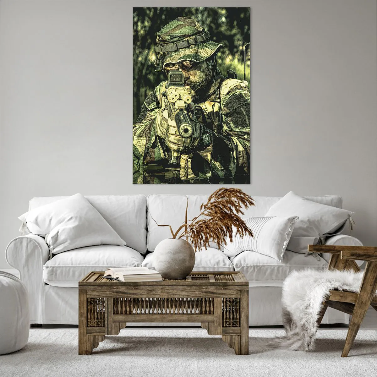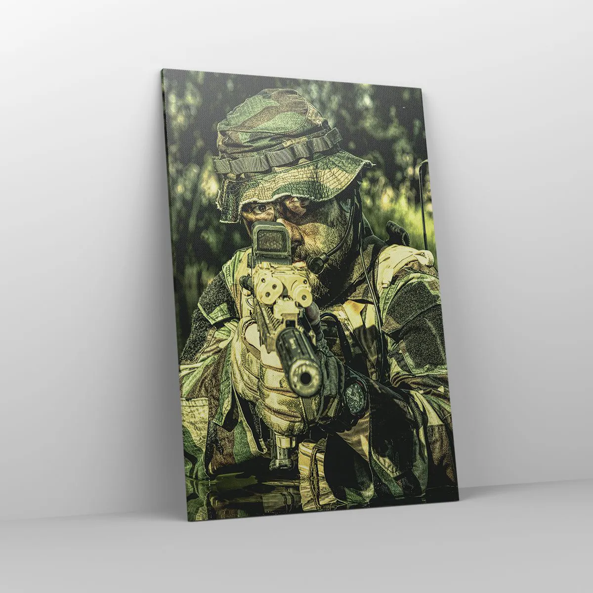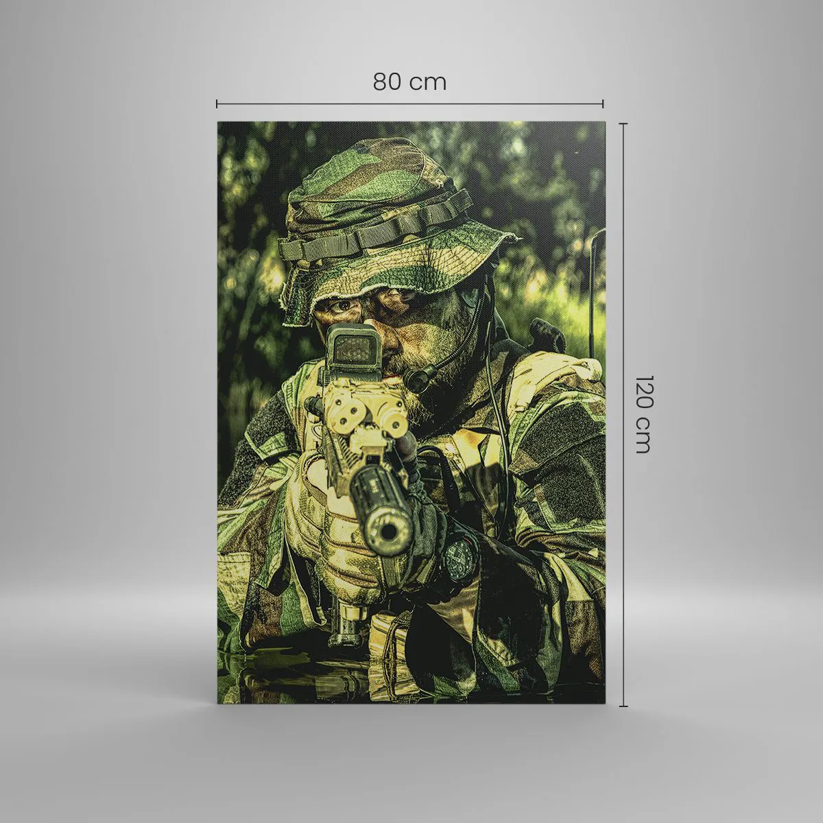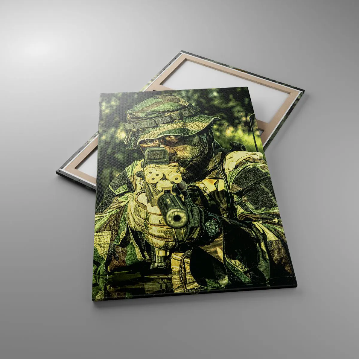 Bild auf Leinwand - Leinwandbild - Ein Soldat in Tarnkleidung zielt durch das Wasser. - 80x120cm - Das Beste vom Besten - Moderne Wanddekoration für Wohnzimmer und Schlafzimmer ARTTOR
