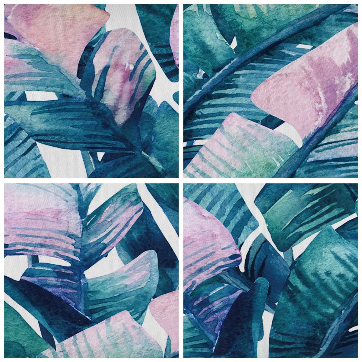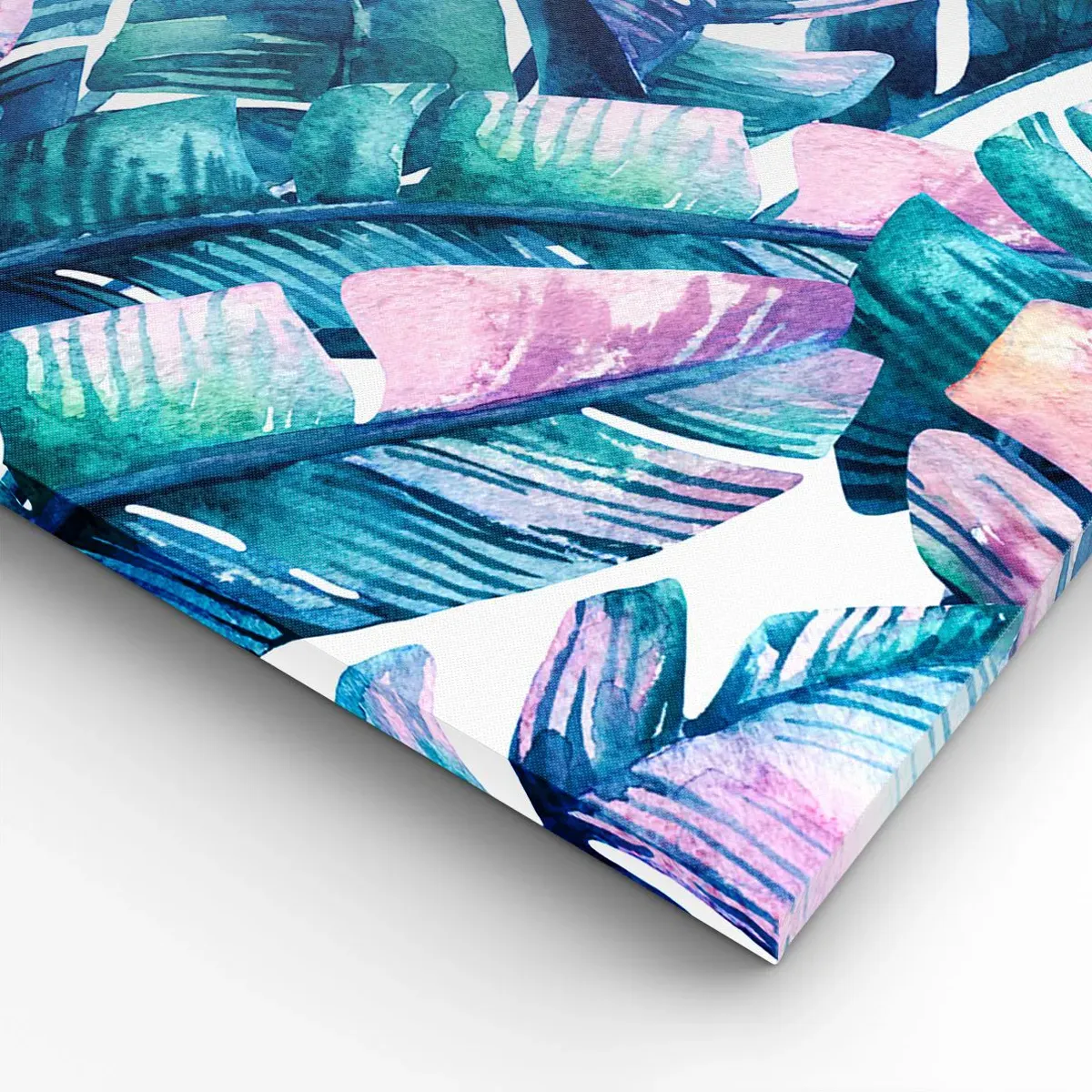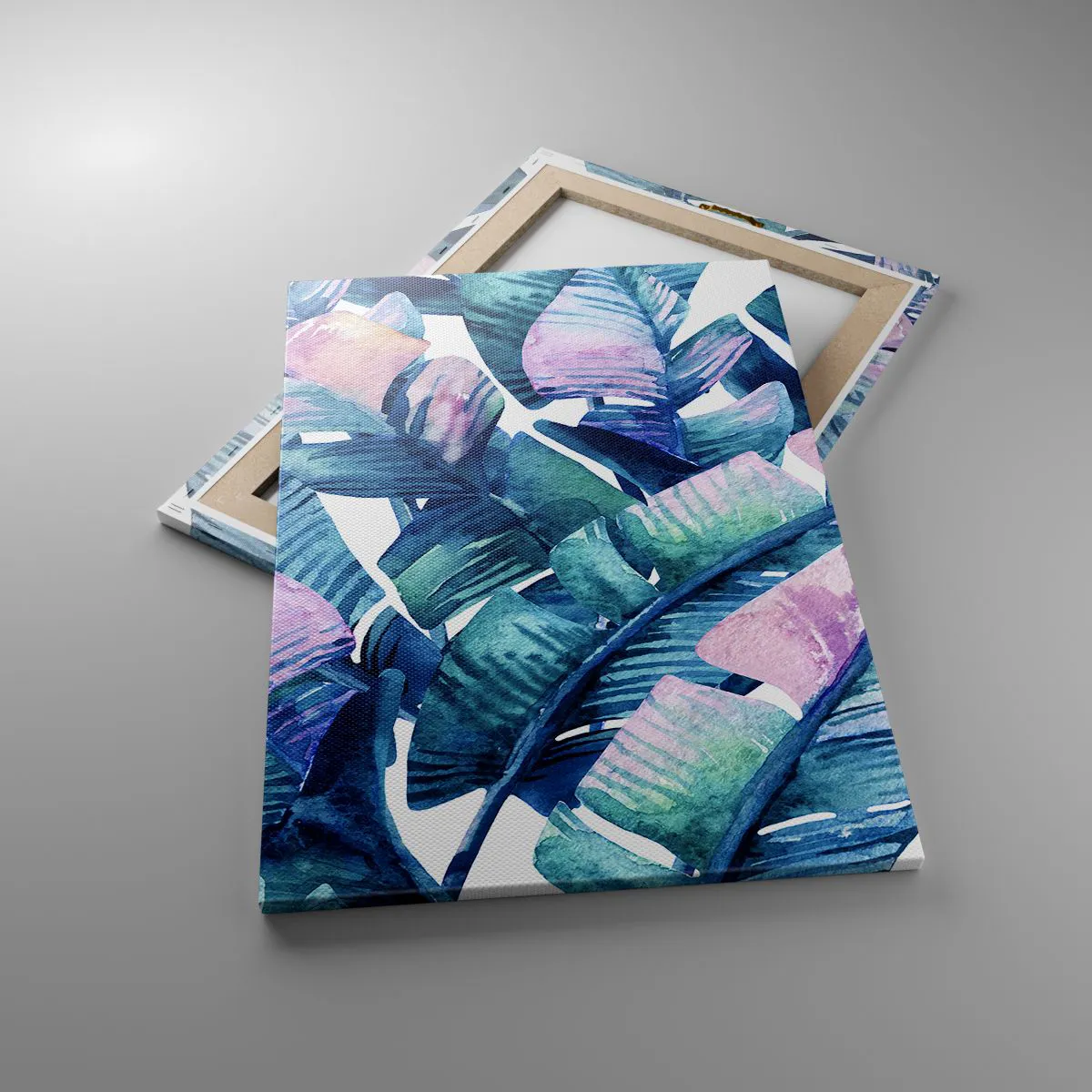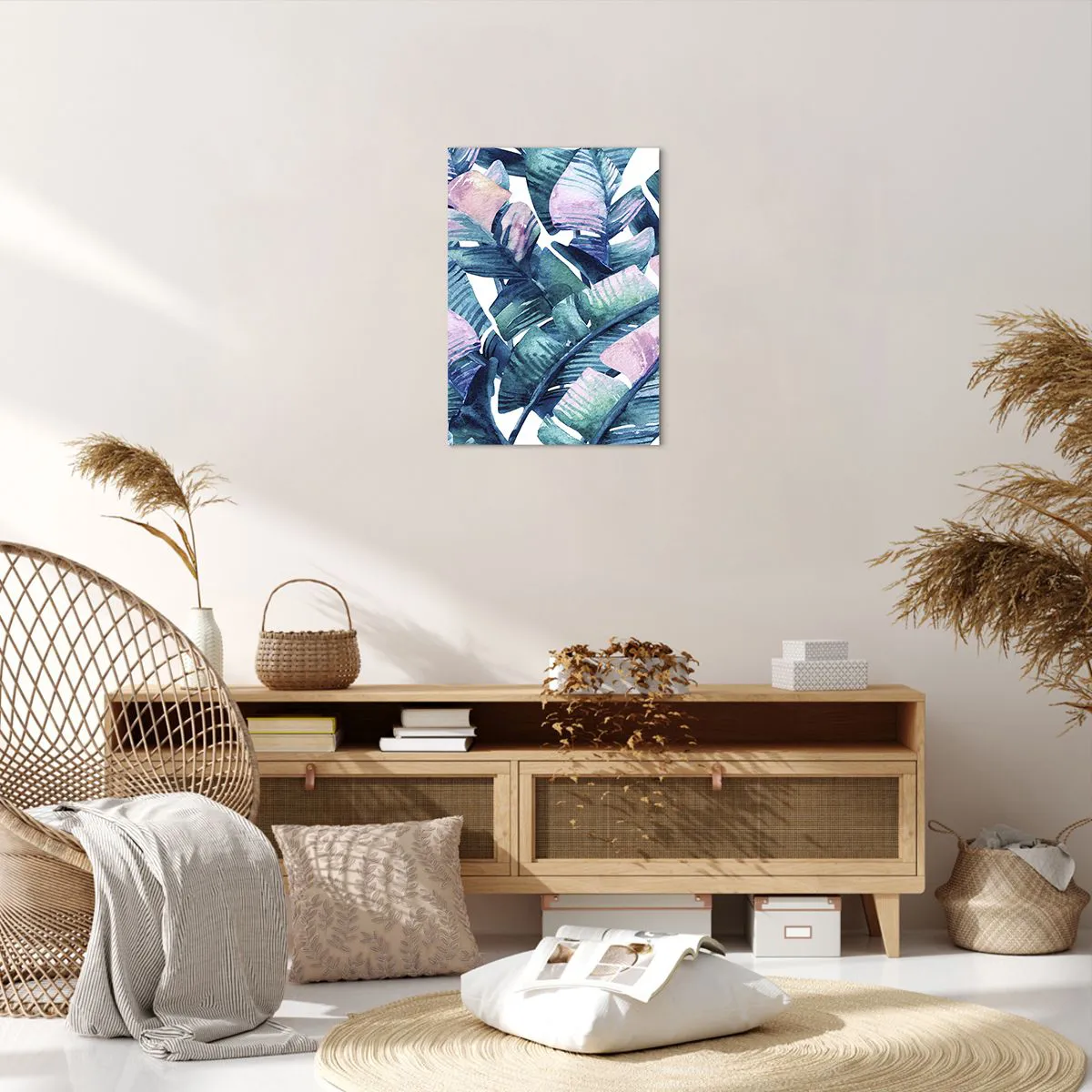 Bild auf Leinwand - Leinwandbild - Bananenblätter in Blau- und Rosatönen - 50x70cm - In einem Bananenhain - Moderne Wanddekoration für Wohnzimmer und Schlafzimmer ARTTOR