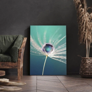 Bild auf Leinwand - Leinwandbild - Makroaufnahme eines Wassertropfens auf einem zarten Löwenzahnsamen - 50x70cm - Mystischer Moment - Moderne Wanddekoration für Wohnzimmer und Schlafzimmer ARTTOR