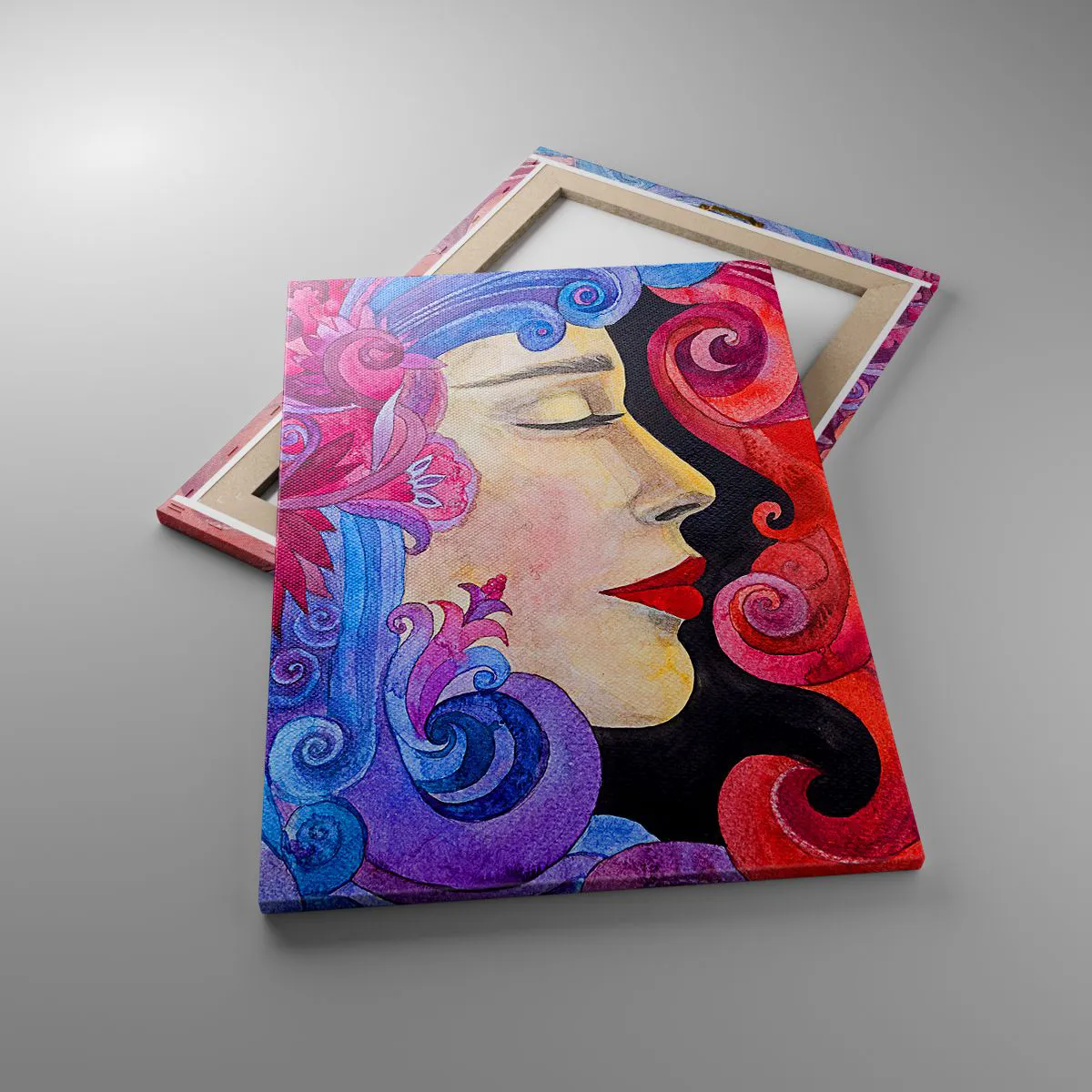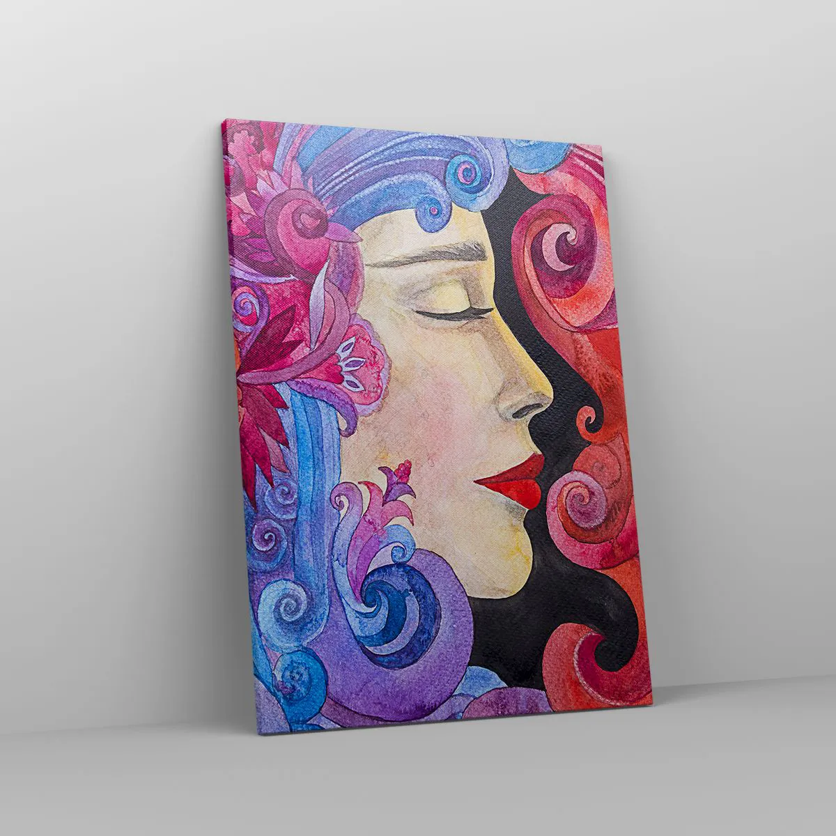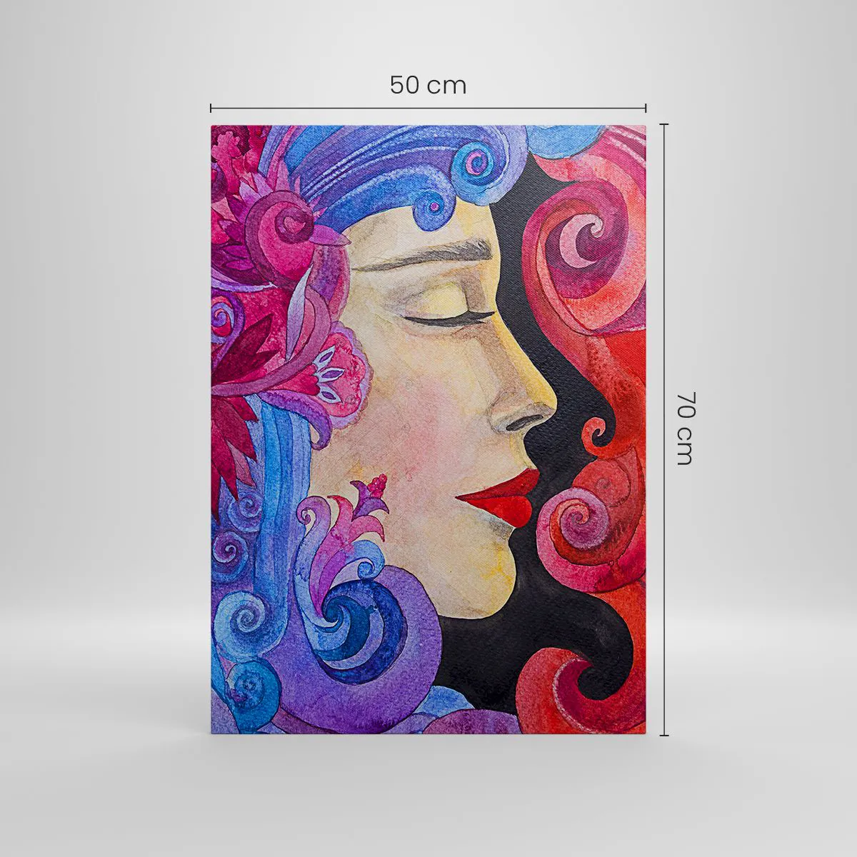 Bild auf Leinwand - Leinwandbild - Buntes Profil einer Frau im künstlerischen Stil - 50x70cm - Der Jugendstil lebt noch - Moderne Wanddekoration für Wohnzimmer und Schlafzimmer ARTTOR