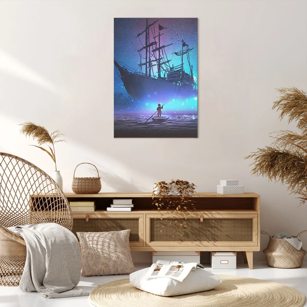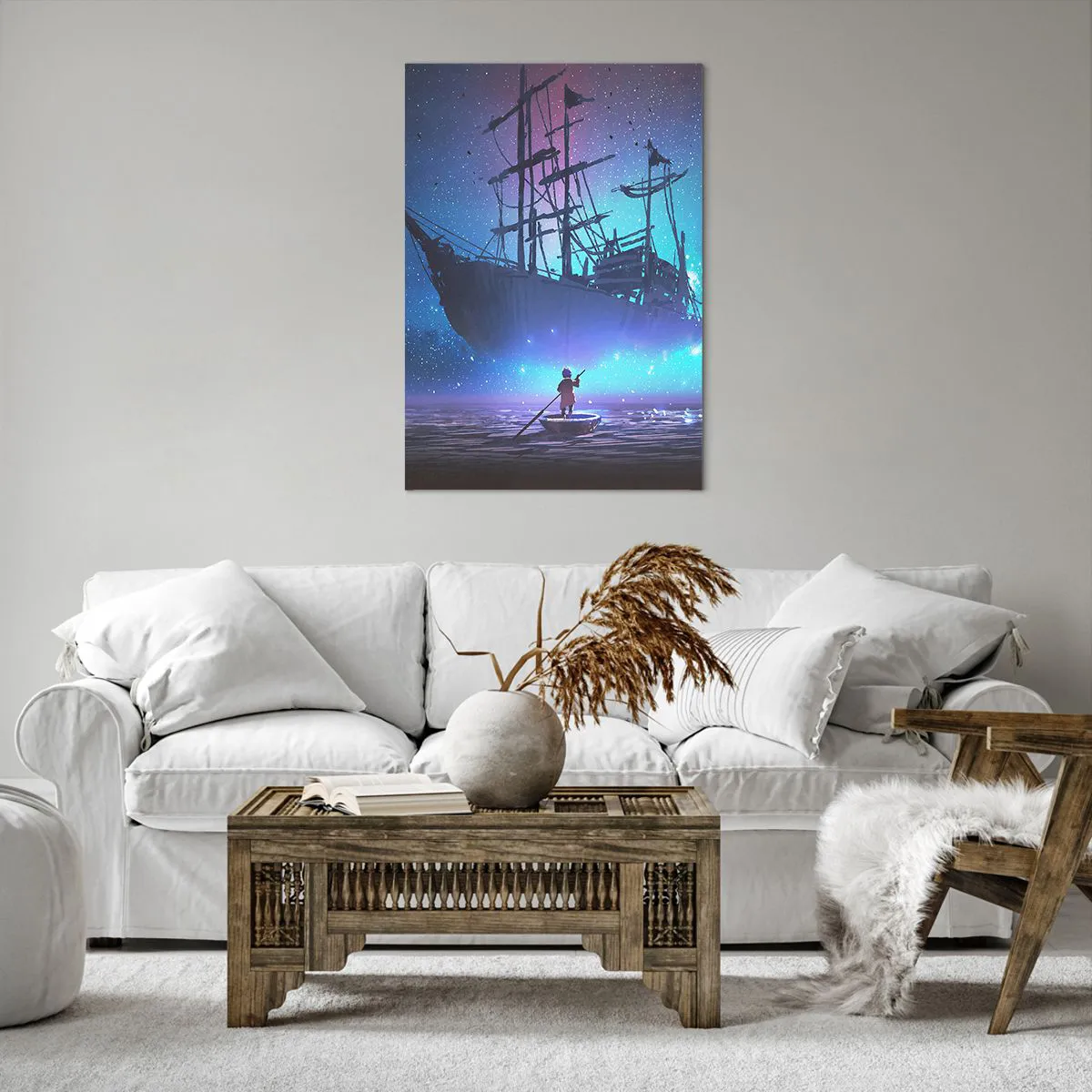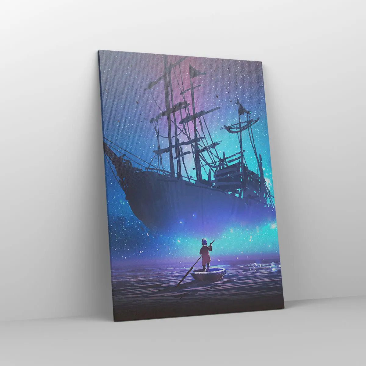 Bild auf Leinwand - Leinwandbild - Ein fantastisches Schiff vor dem Sternenhimmel - 70x100cm - Begegnung mit dem Mythos des Meeres - Moderne Wanddekoration für Wohnzimmer und Schlafzimmer ARTTOR