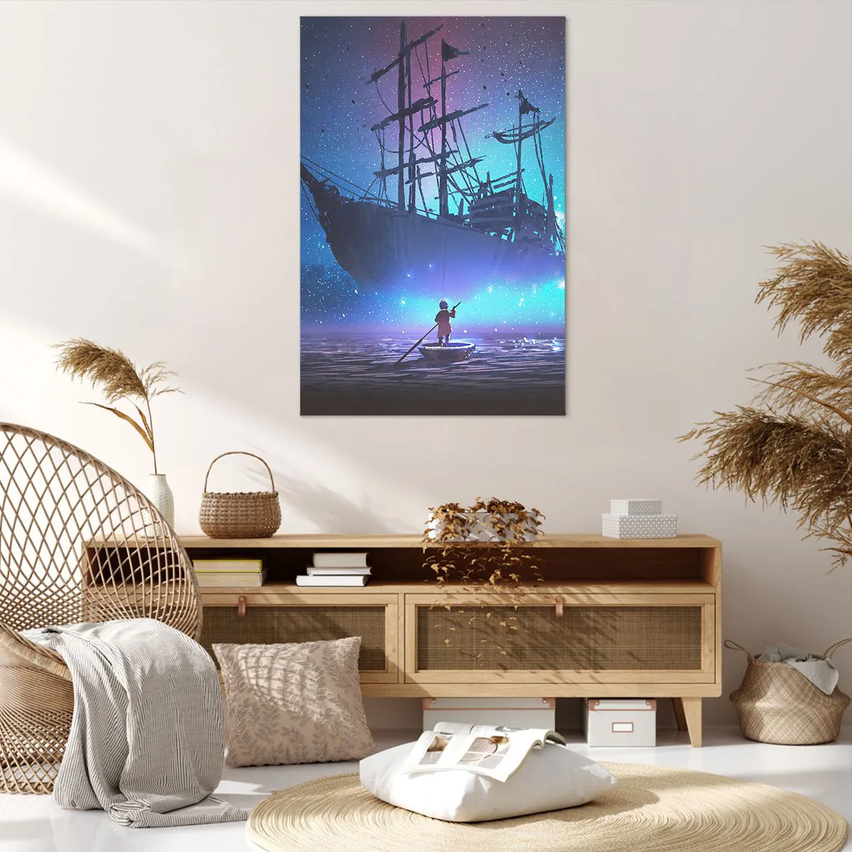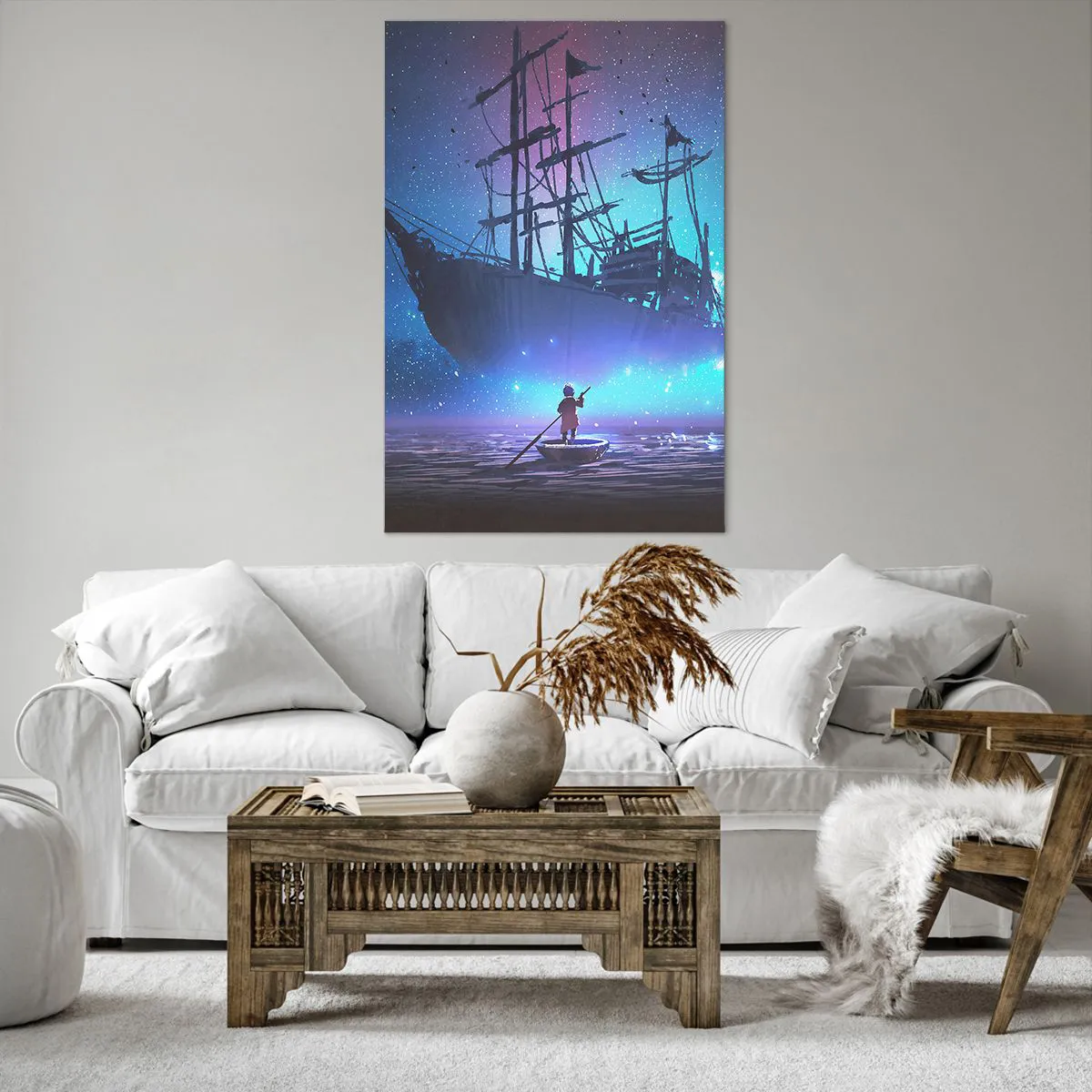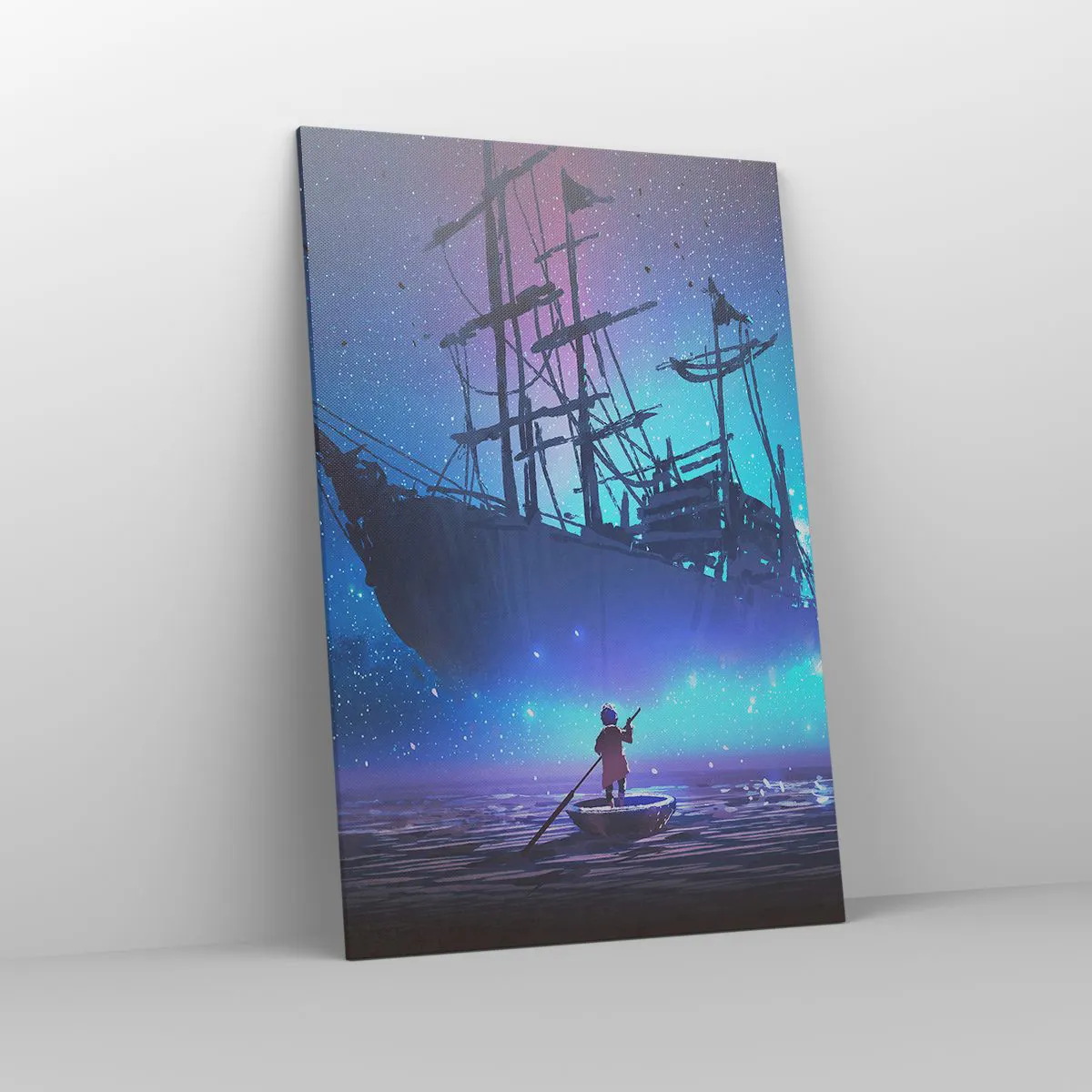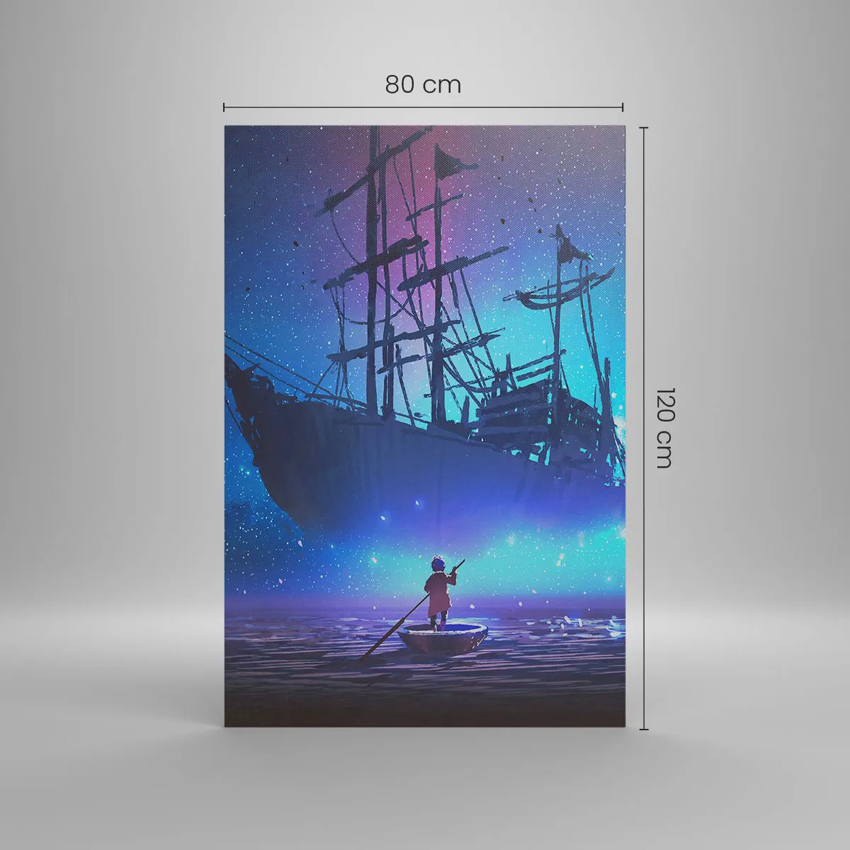 Bild auf Leinwand - Leinwandbild - Ein fantastisches Schiff vor dem Sternenhimmel - 80x120cm - Begegnung mit dem Mythos des Meeres - Moderne Wanddekoration für Wohnzimmer und Schlafzimmer ARTTOR