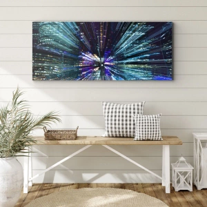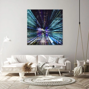 Bild auf Leinwand - Leinwandbild - Dynamische Ansicht der Stadt bei Nacht mit Lichteffekt - 50x70cm - Übergang zum Hyperraum - Moderne Wanddekoration für Wohnzimmer und Schlafzimmer ARTTOR