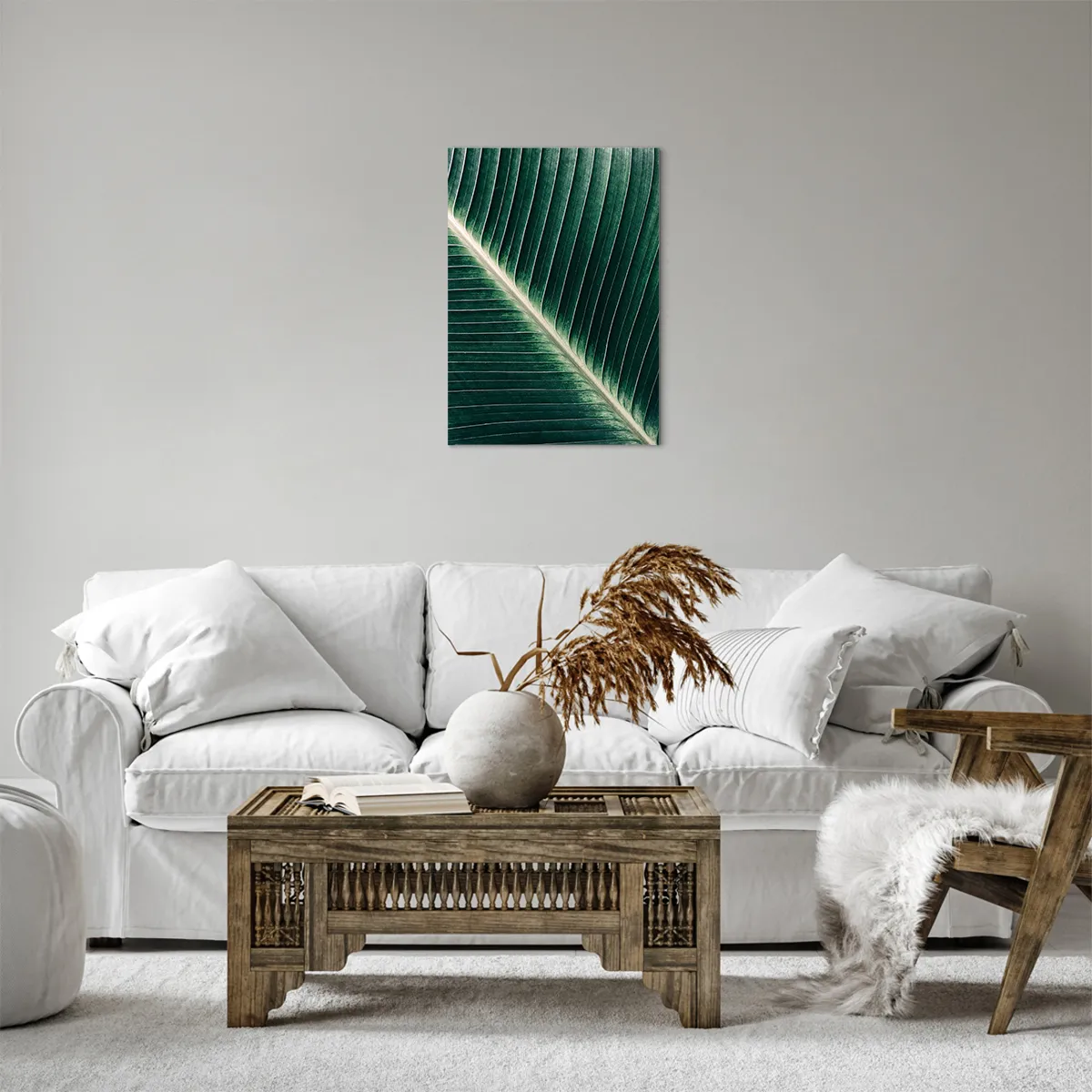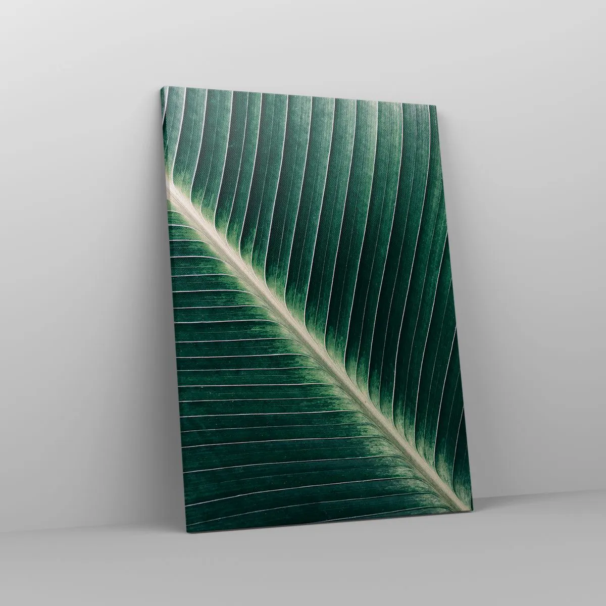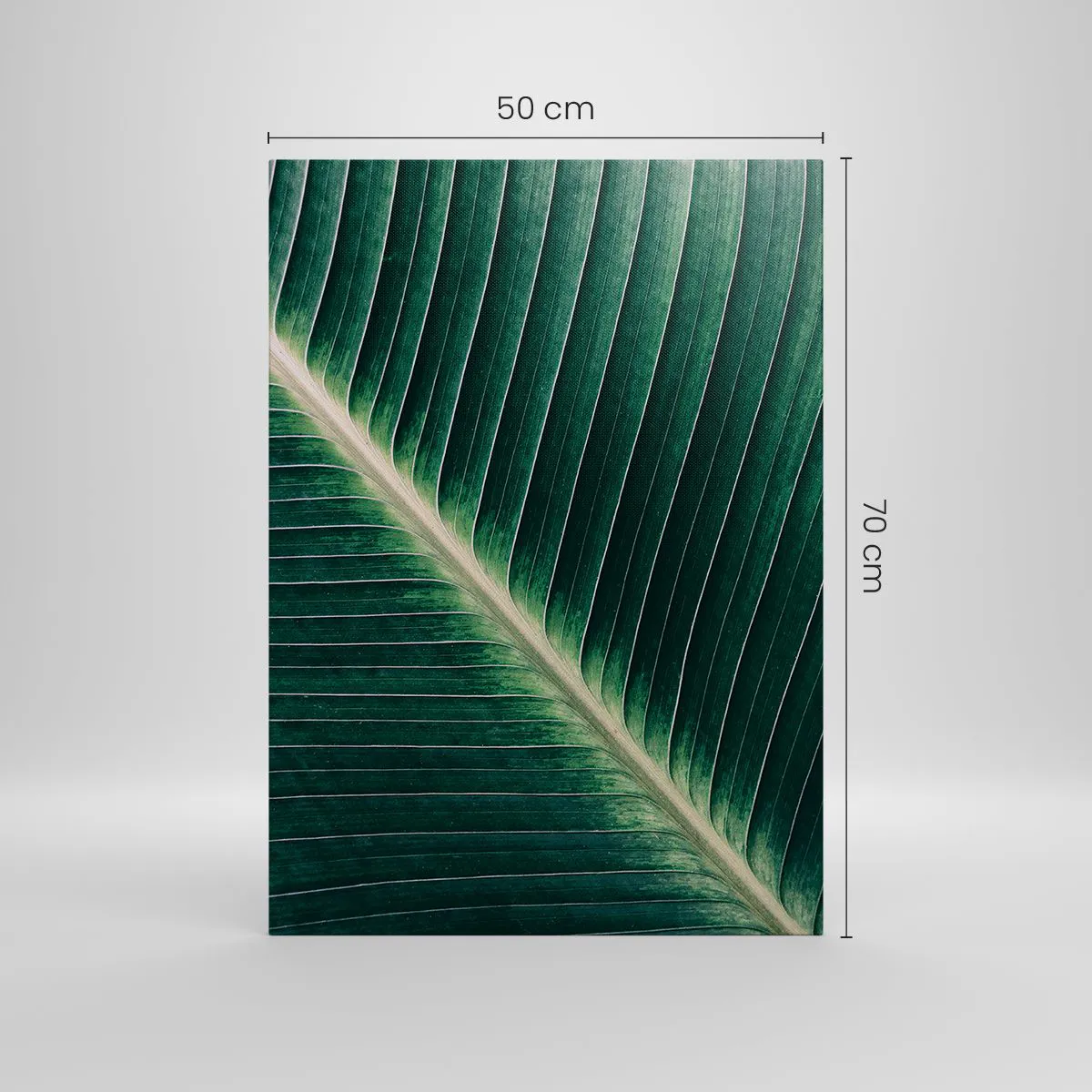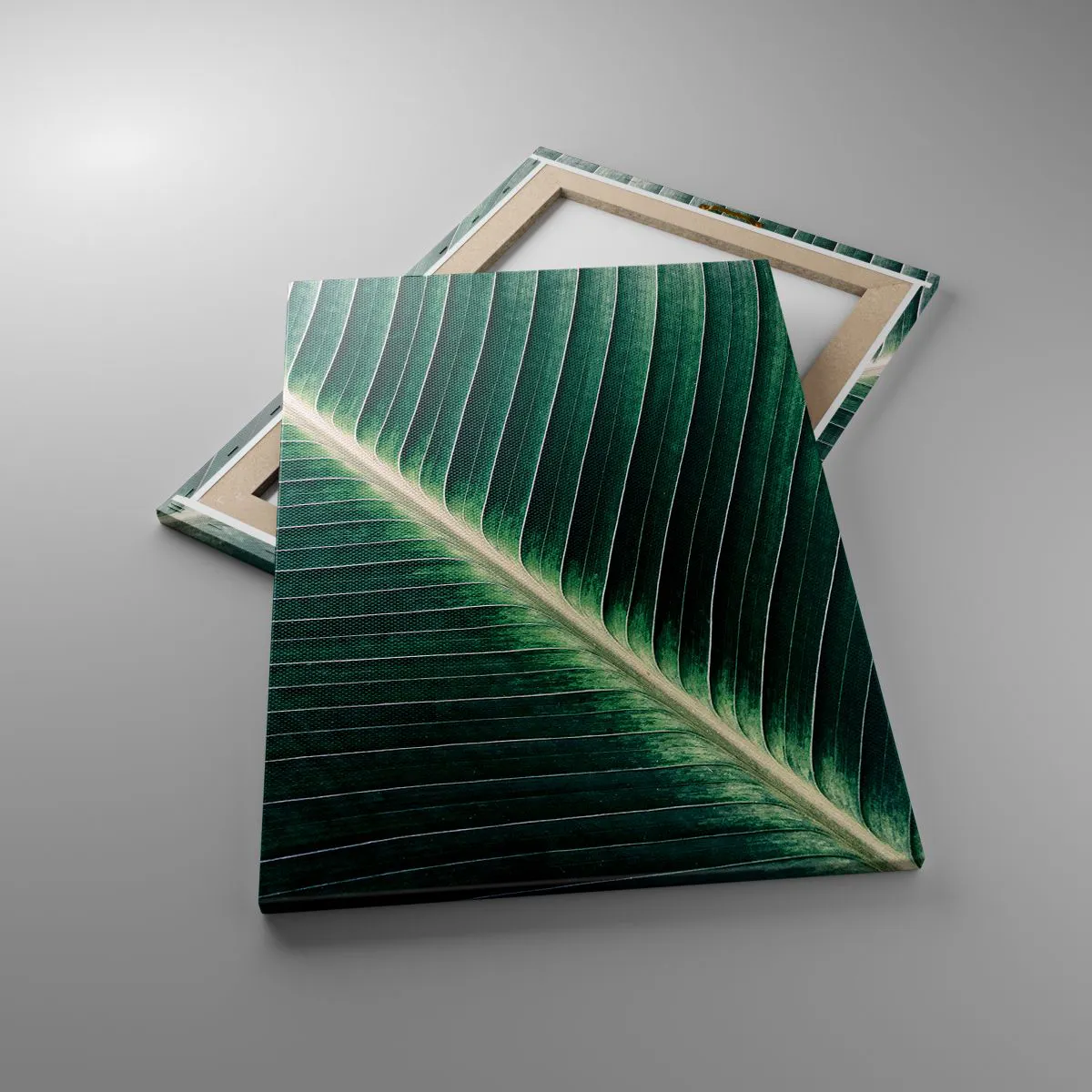 Bild auf Leinwand - Leinwandbild - Nahaufnahme der Struktur eines grünen Blattes - 50x70cm - Rhythmus der Natur - Moderne Wanddekoration für Wohnzimmer und Schlafzimmer ARTTOR