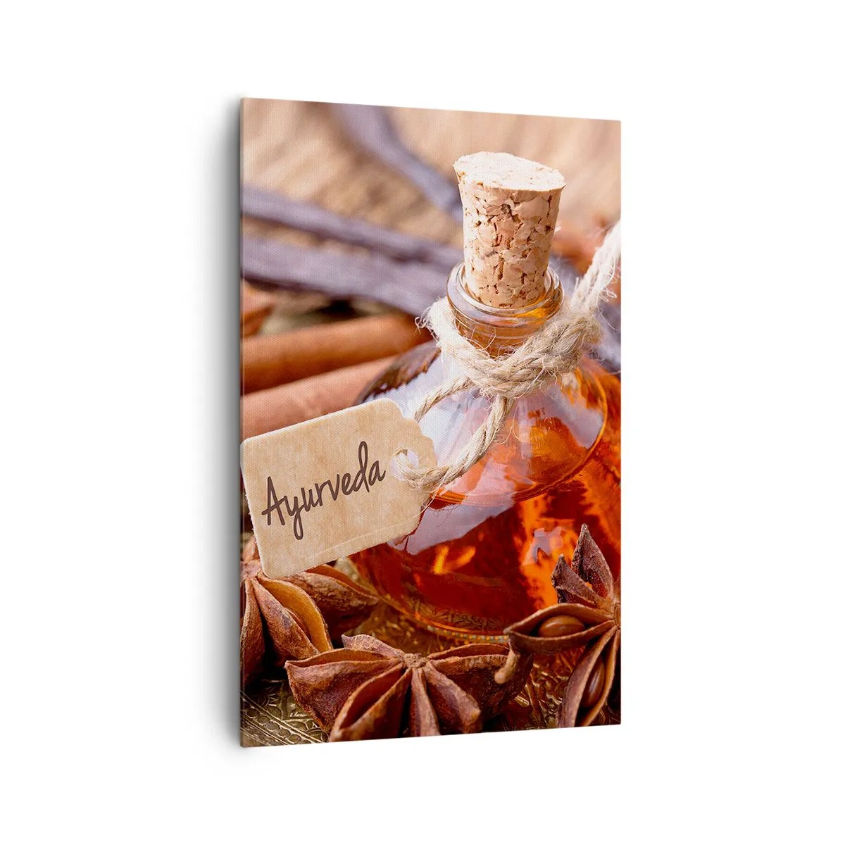 Bild auf Leinwand - Leinwandbild - Eine Flasche Gewürzöl auf einem Tablett - 80x120cm - Zur Einheit von Körper und Geist - Moderne Wanddekoration für Wohnzimmer und Schlafzimmer ARTTOR
