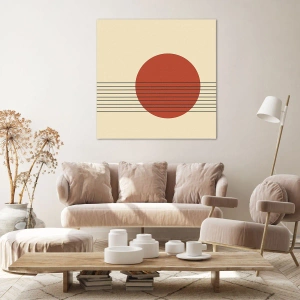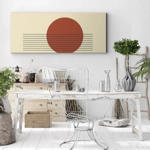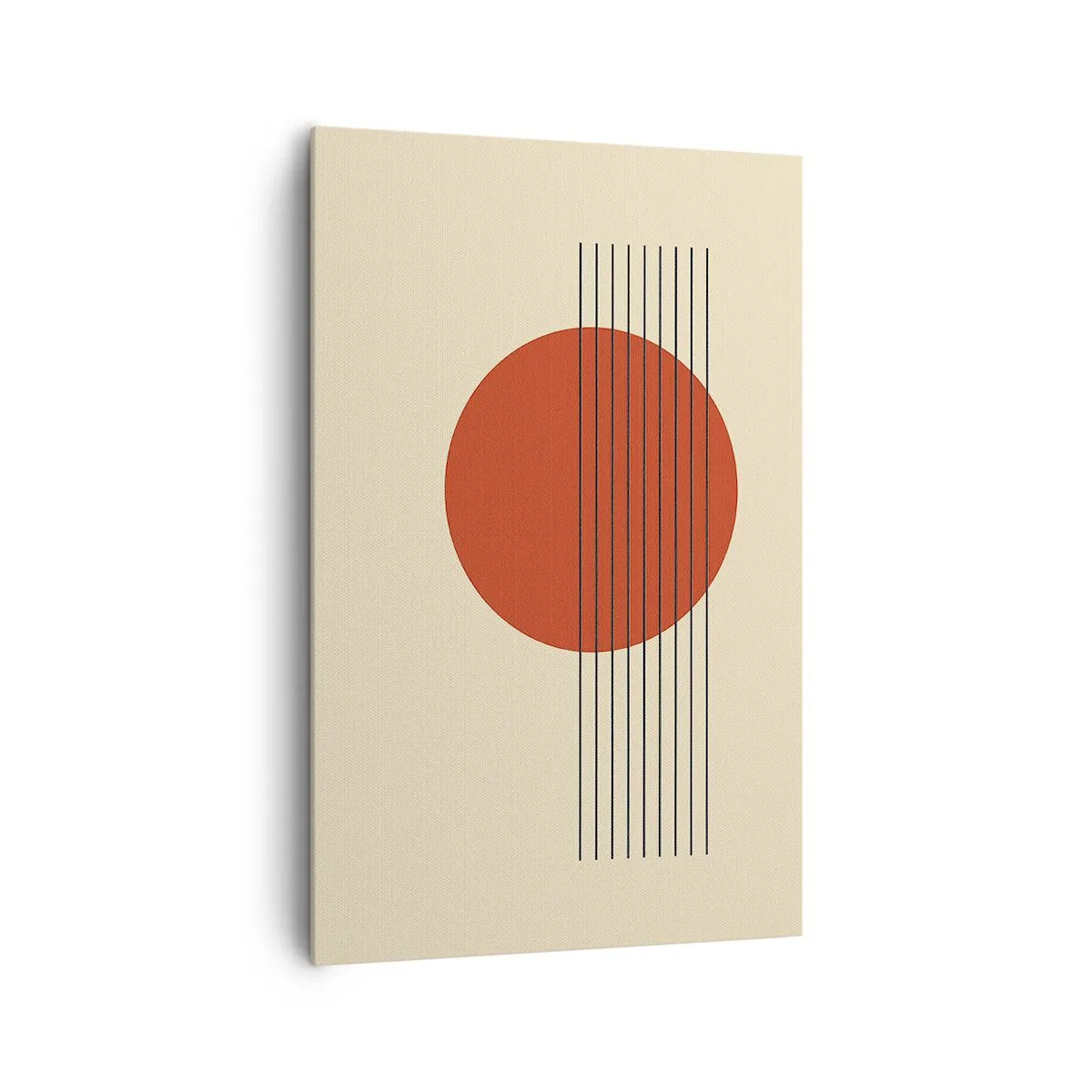 Bild auf Leinwand - Leinwandbild - Abstrakter roter Kreis mit Linien auf beigem Hintergrund. - 80x120cm - Immer wieder und weiter - Moderne Wanddekoration für Wohnzimmer und Schlafzimmer ARTTOR