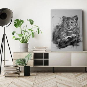 Bild auf Leinwand - Leinwandbild - Schwarz-Weiß-Porträt eines Löwen im künstlerischen Stil mit dynamischen Strichen. - 120x80cm - Ja, ich höre aufmerksam zu - Moderne Wanddekoration für Wohnzimmer und Schlafzimmer ARTTOR