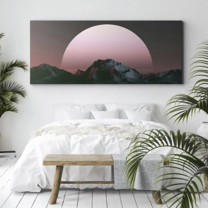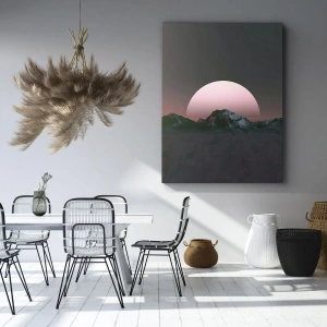 Bild auf Leinwand - Leinwandbild - Geometrische Berge mit der untergehenden Sonne im Hintergrund - 80x120cm - In einer Nachbargalaxie - Moderne Wanddekoration für Wohnzimmer und Schlafzimmer ARTTOR