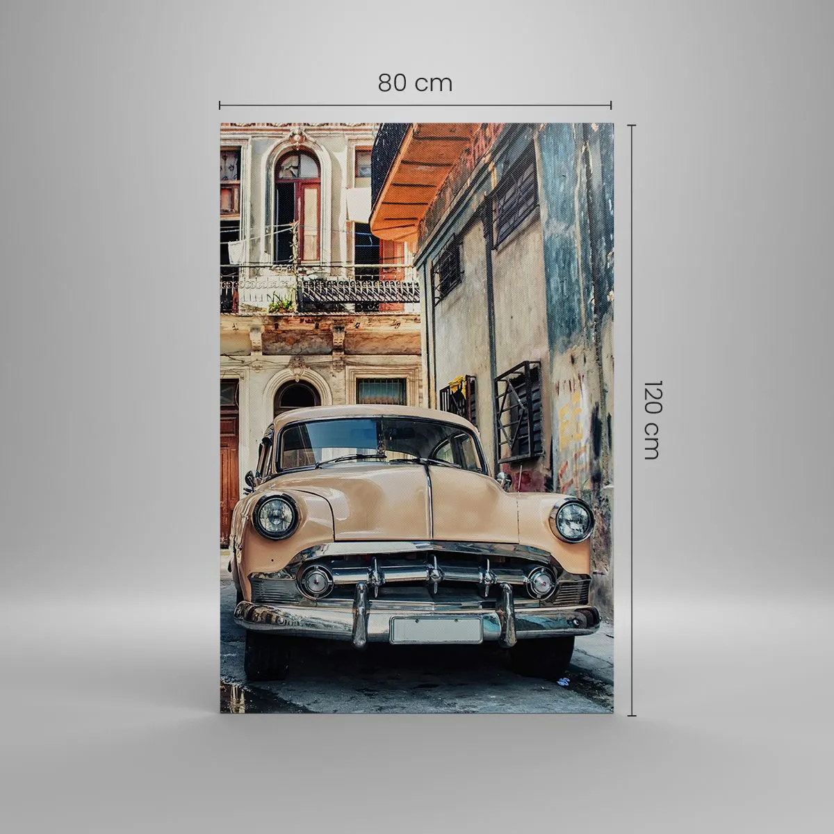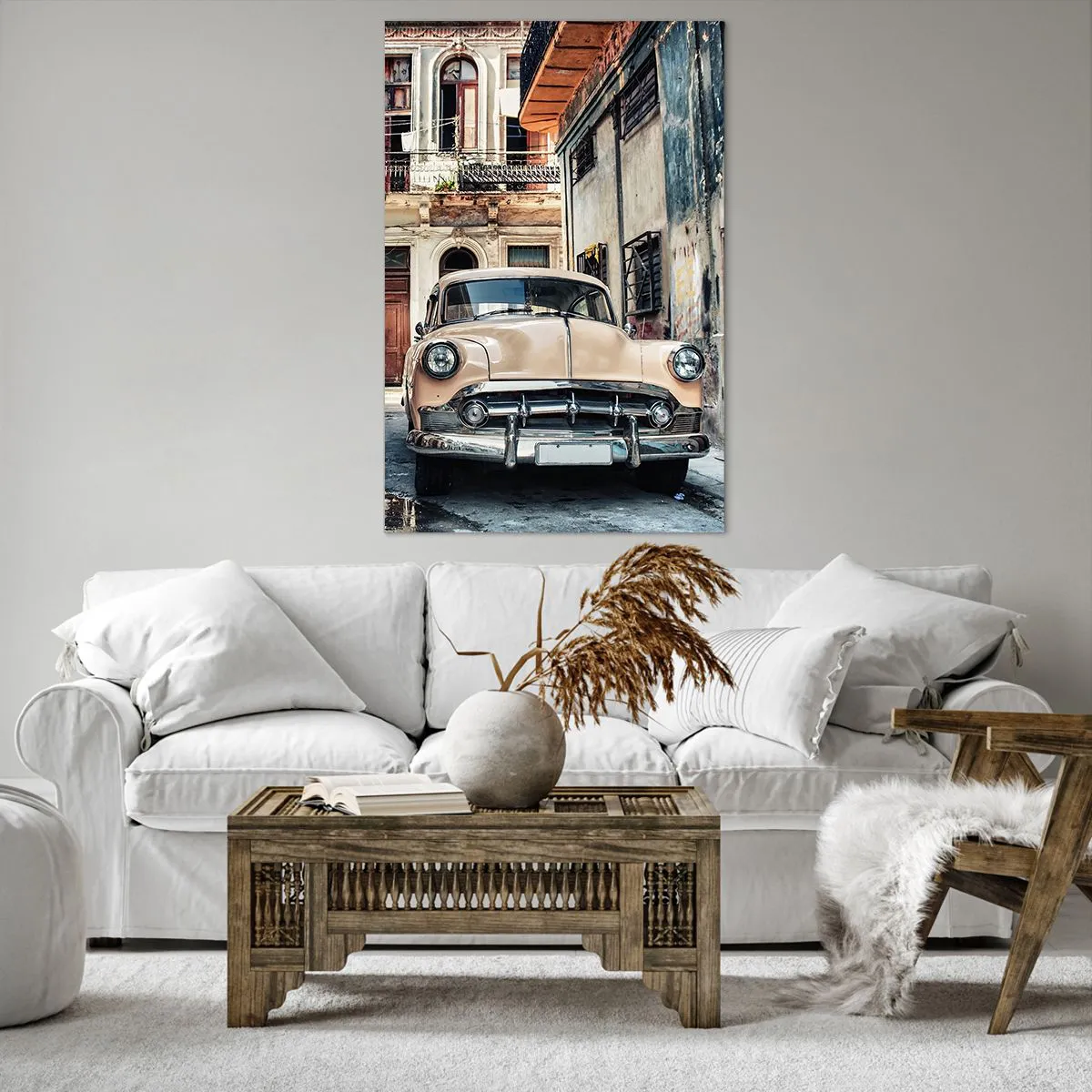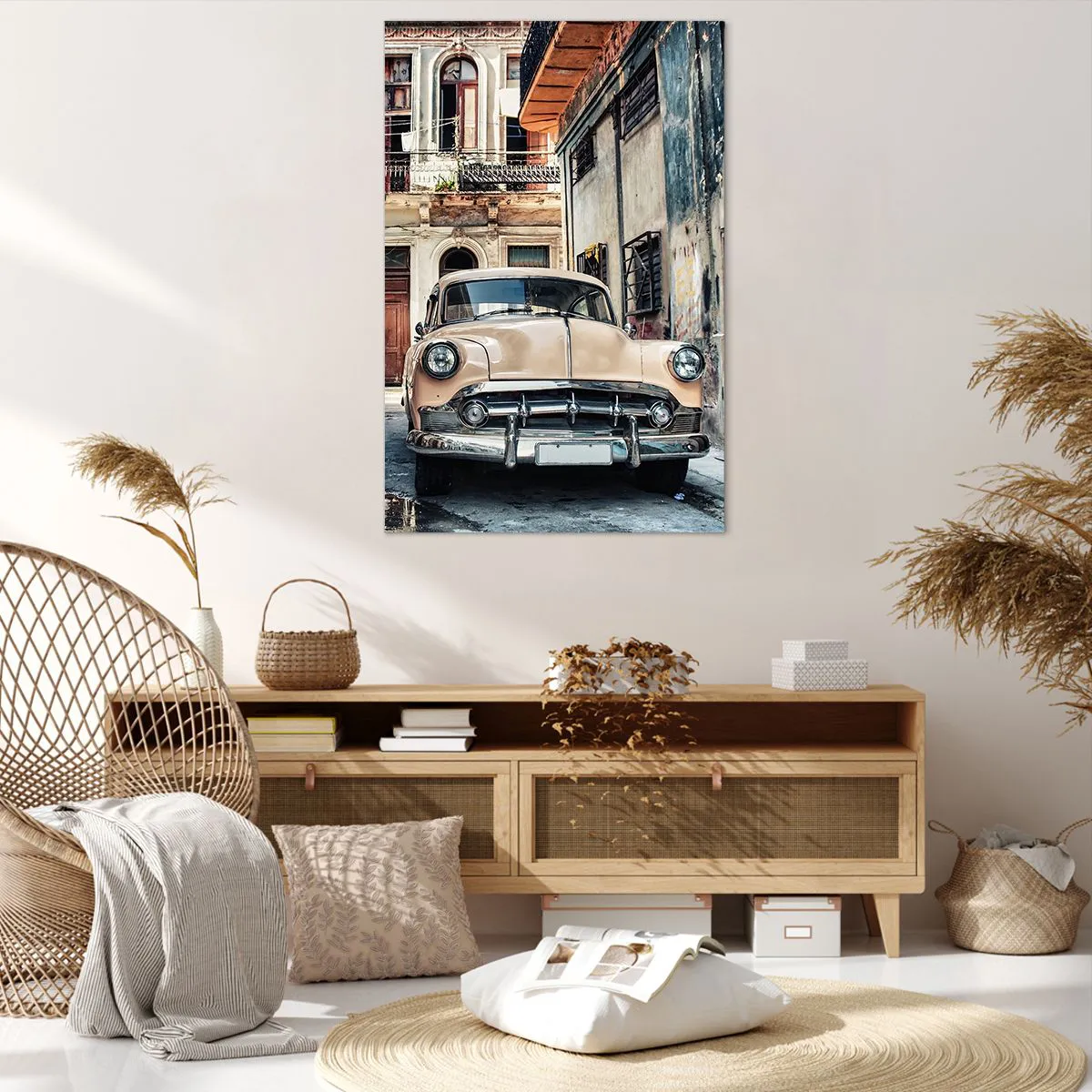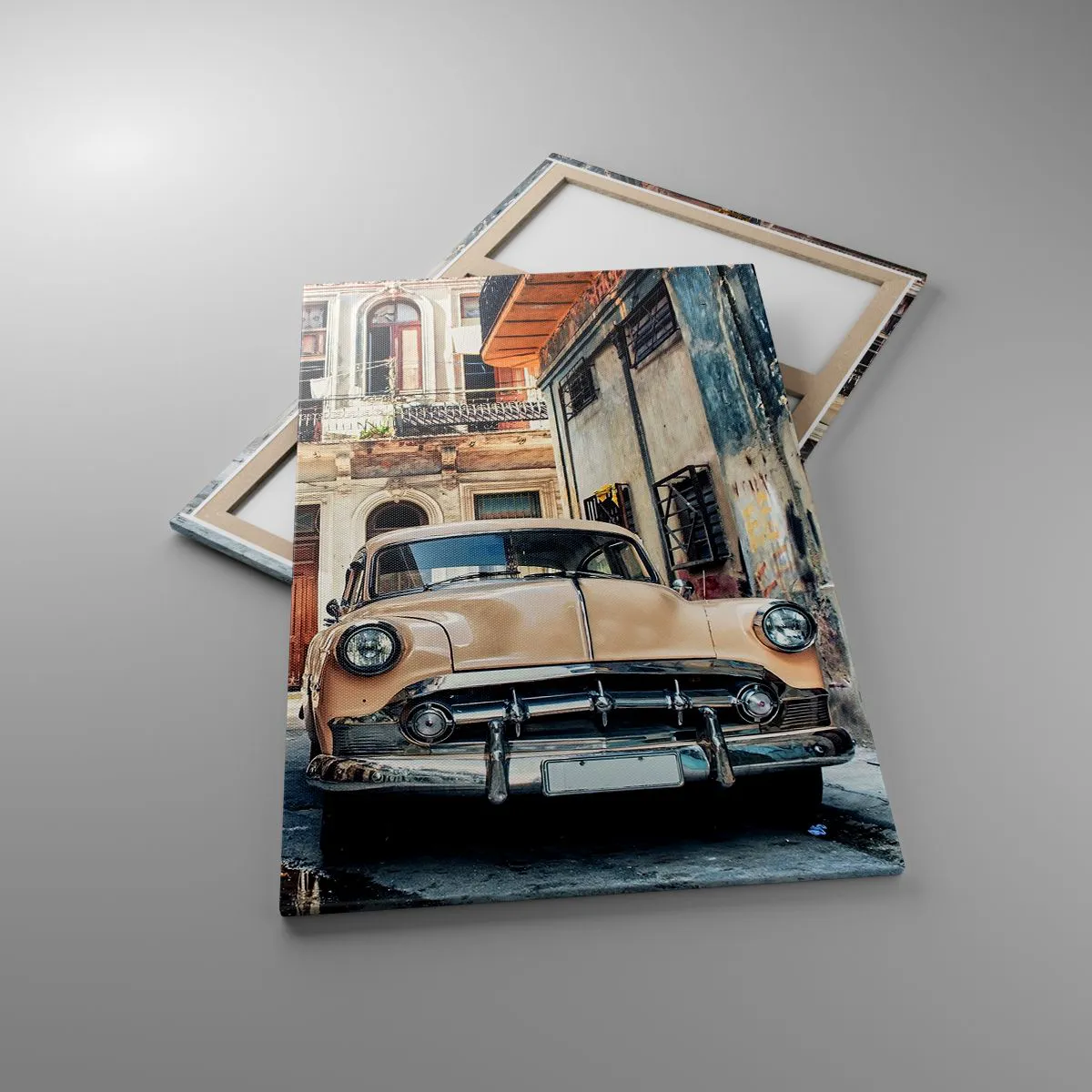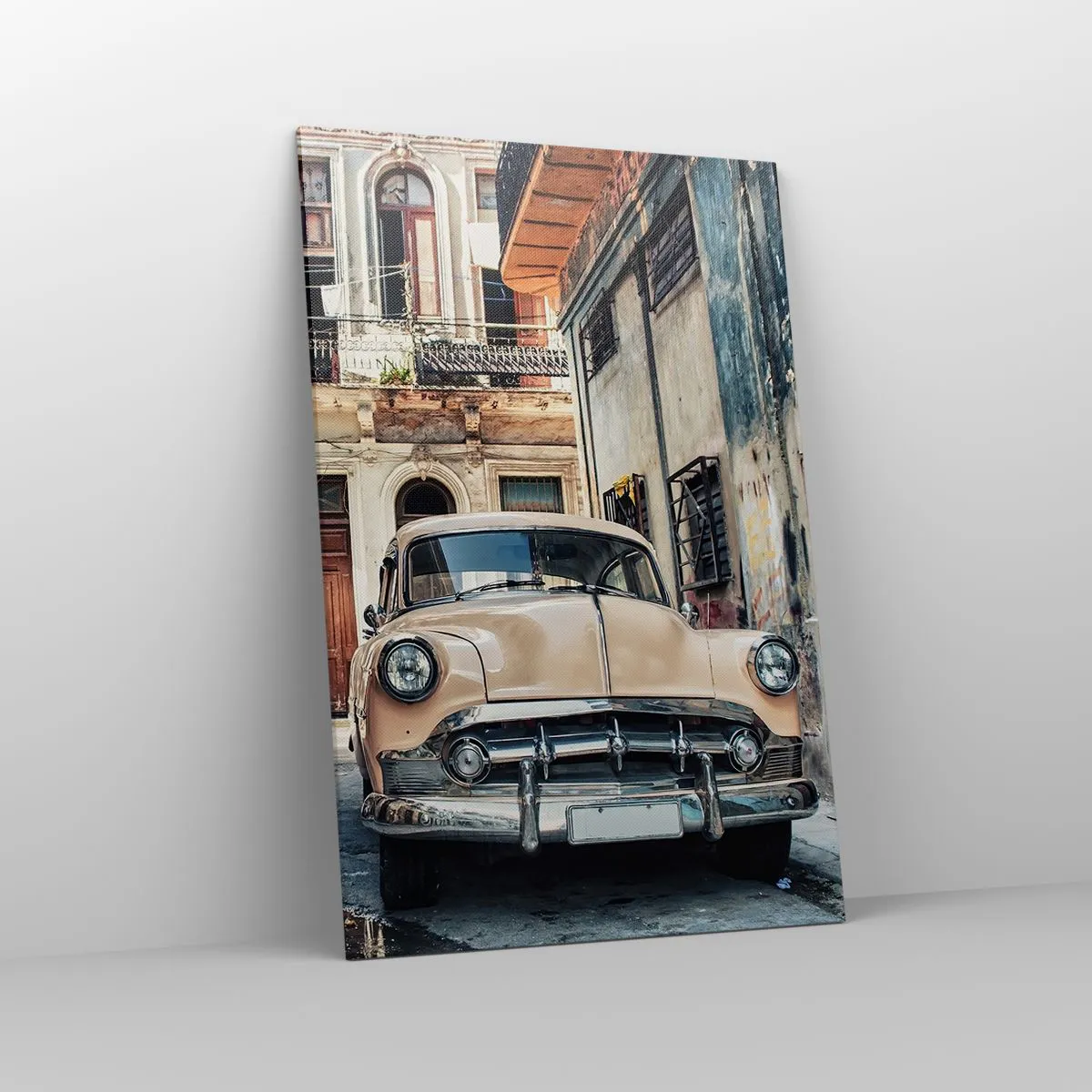Bild auf Leinwand - Leinwandbild - Ein Oldtimer vor der Kulisse urbaner Architektur - 80x120cm - Die Siesta in Havanna - Moderne Wanddekoration für Wohnzimmer und Schlafzimmer ARTTOR
