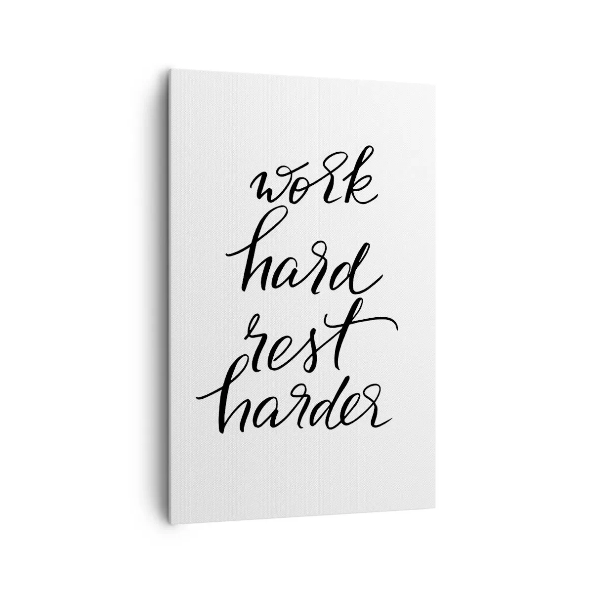 Bild auf Leinwand - Leinwandbild - Zitat „Arbeite hart, ruhe dich härter aus“ auf weißem Hintergrund - 80x120cm - Lebensbalance - Moderne Wanddekoration für Wohnzimmer und Schlafzimmer ARTTOR