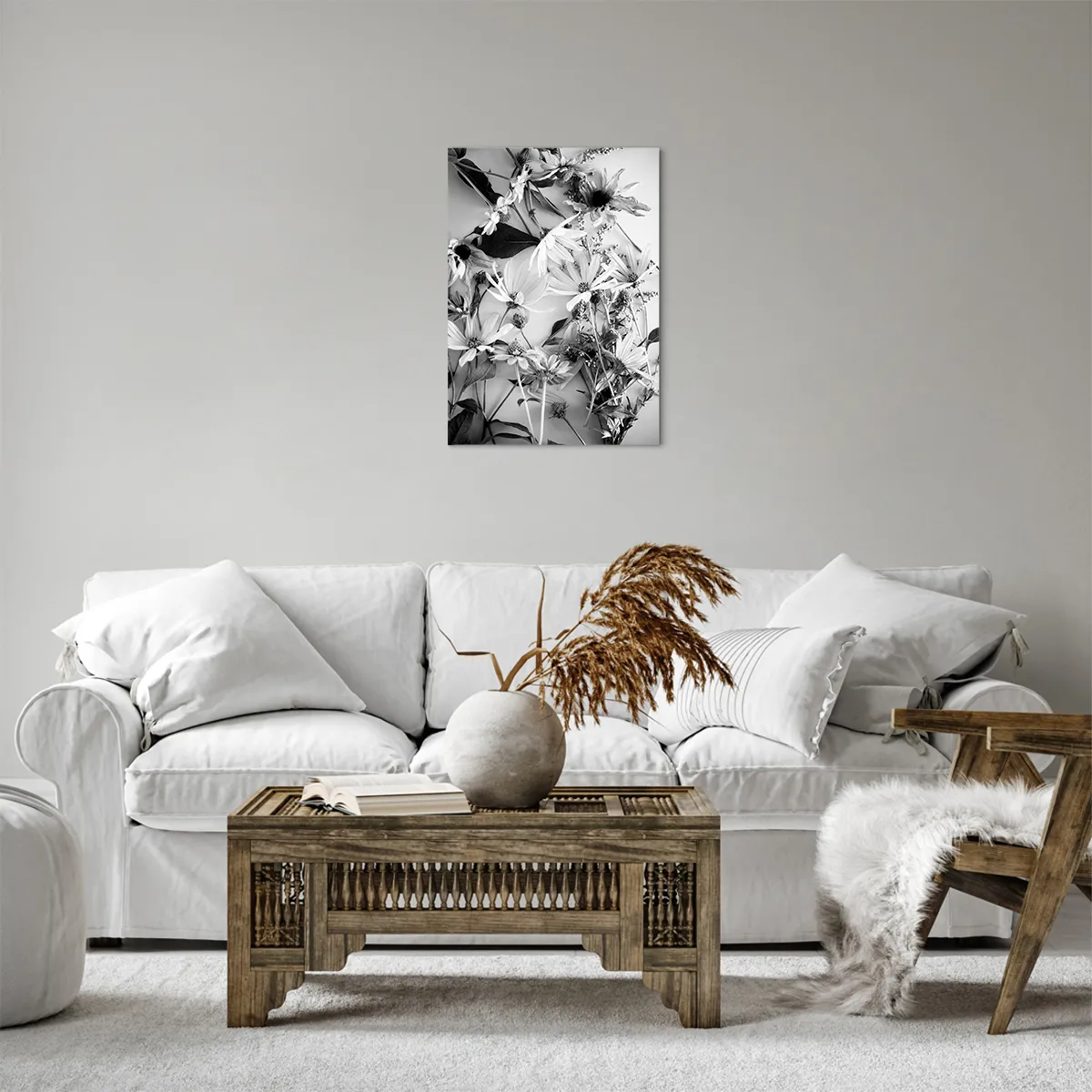 Bild auf Leinwand - Leinwandbild - Schwarz-weiße Blumenarrangements in dezentem Kunststil - 50x70cm - Kein Blumenstrauß - Moderne Wanddekoration für Wohnzimmer und Schlafzimmer ARTTOR