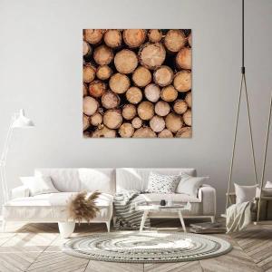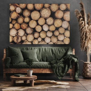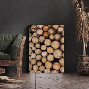 Bild auf Leinwand - Leinwandbild - Stapel gefällter Baumstämme in harmonischer Anordnung - 80x120cm - Ein neuer Anfang - Moderne Wanddekoration für Wohnzimmer und Schlafzimmer ARTTOR
