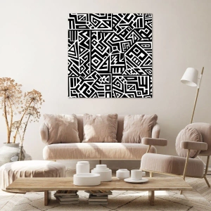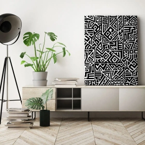 Bild auf Leinwand - Leinwandbild - Schwarz-weiße geometrische Muster, inspiriert von der präkolumbianischen Kultur - 70x100cm - Präkolumbianische Komposition - Moderne Wanddekoration für Wohnzimmer und Schlafzimmer ARTTOR