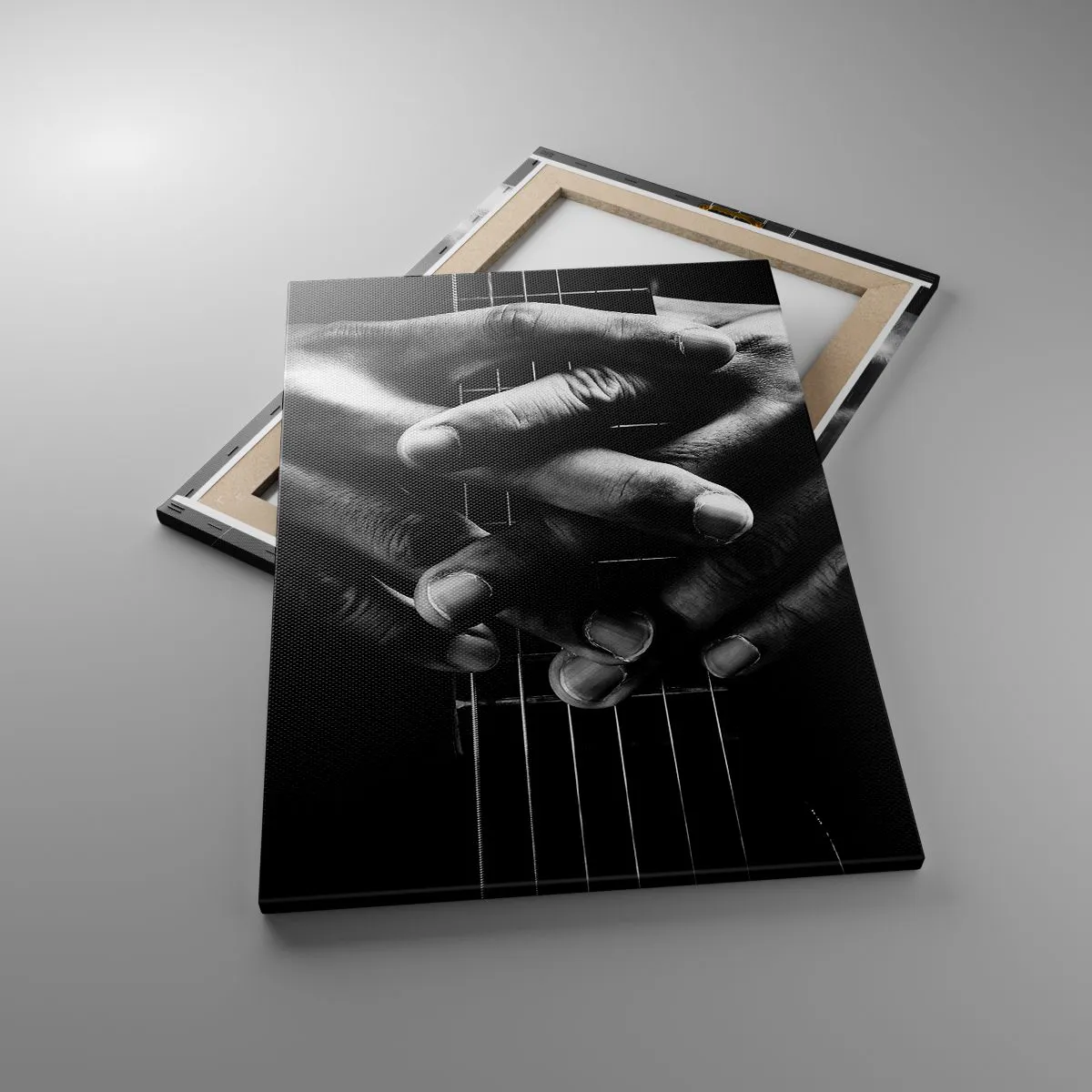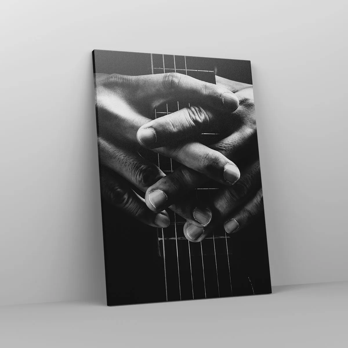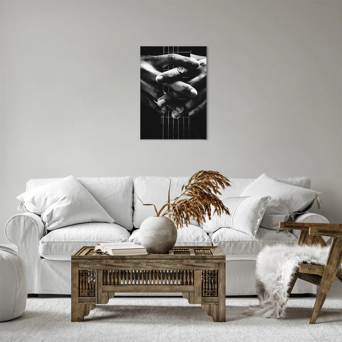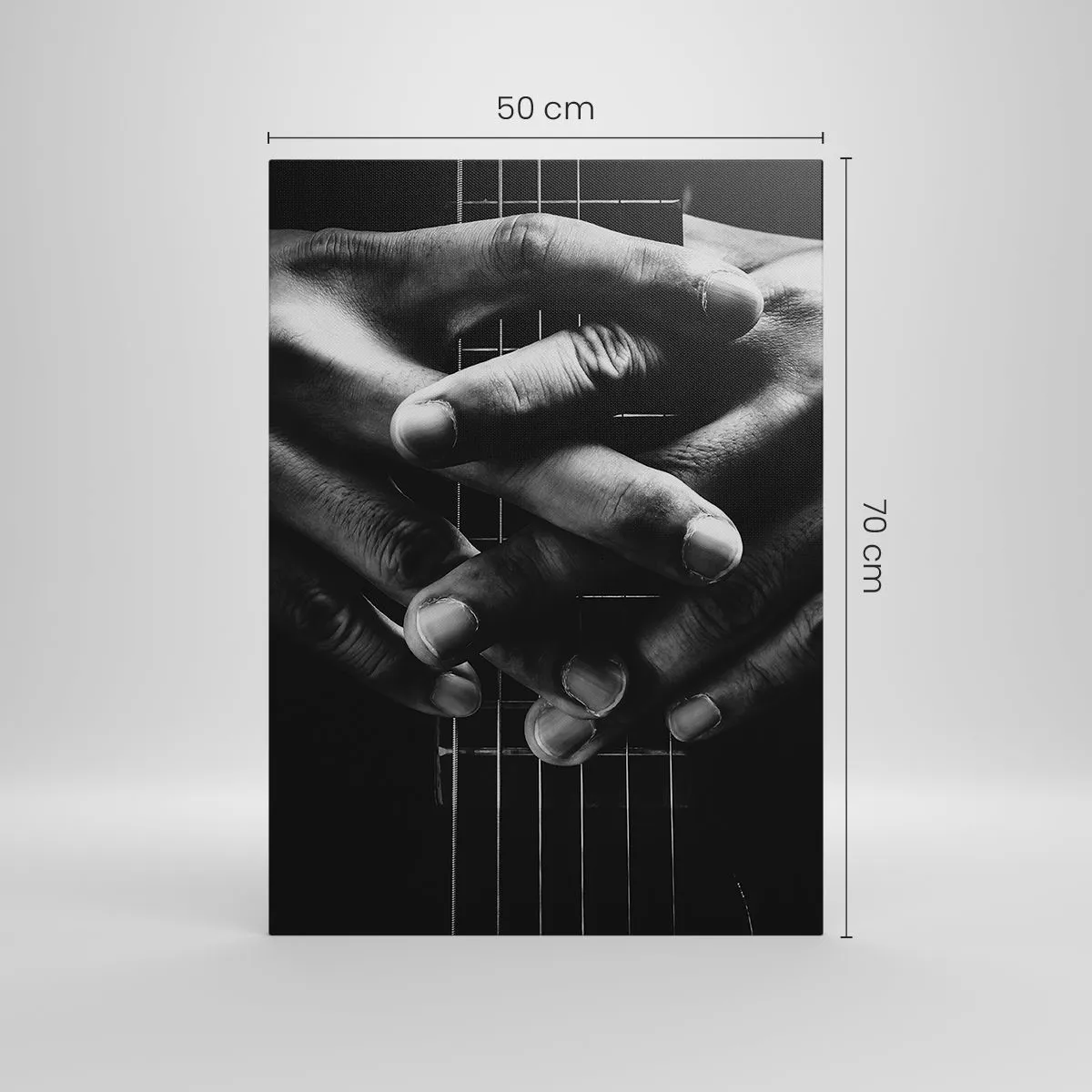 Bild auf Leinwand - Leinwandbild - Hände auf einer Gitarre in einem monochromen Ton gefaltet - 50x70cm - Gebet des Künstlers - Moderne Wanddekoration für Wohnzimmer und Schlafzimmer ARTTOR