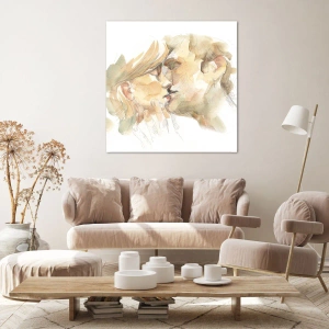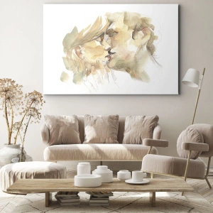 Bild auf Leinwand - Leinwandbild - Romantisches Aquarellporträt eines sich küssenden Paares - 50x70cm - Hälfte gefunden? - Moderne Wanddekoration für Wohnzimmer und Schlafzimmer ARTTOR