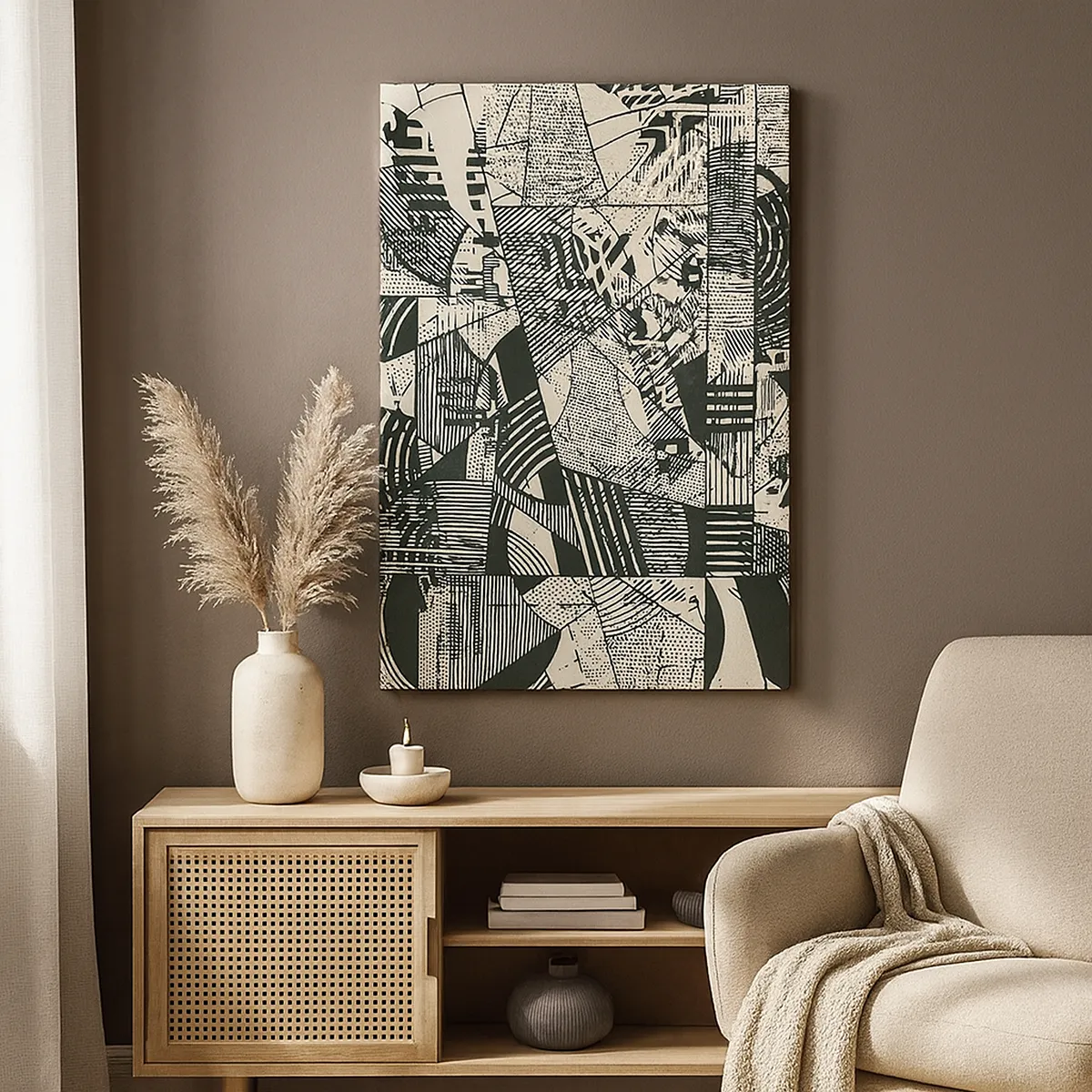 Wir verwenden ökologische, geruchslose und langlebige Tinten mit tiefer Farbsättigung. Durch moderne Drucktechnik wird der Druck präzise platziert, wobei die sichtbare Struktur der Leinwand erhalten bleibt