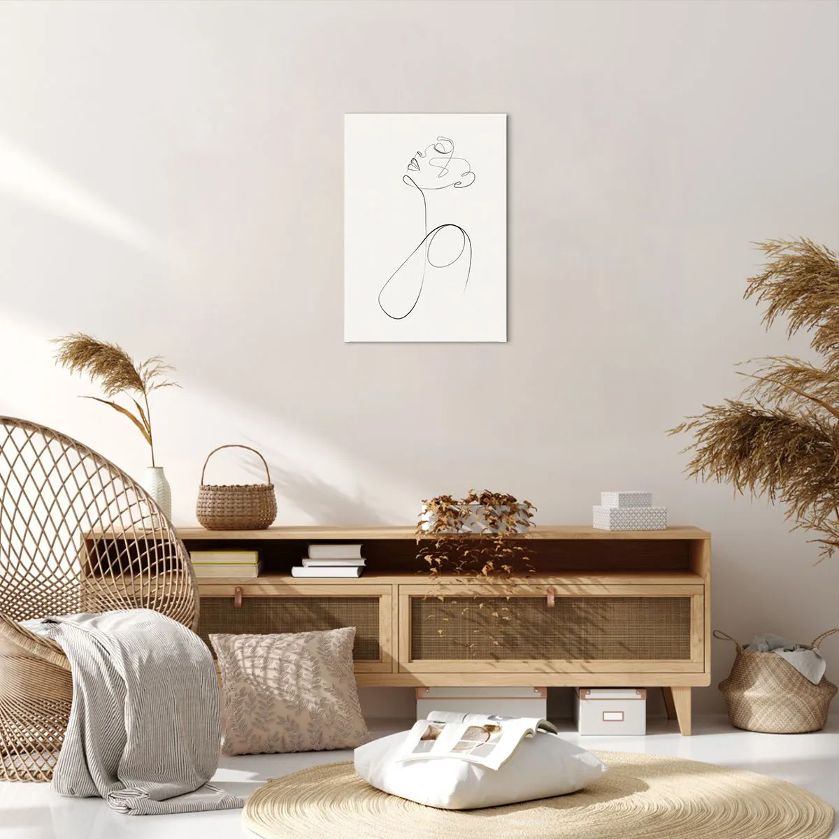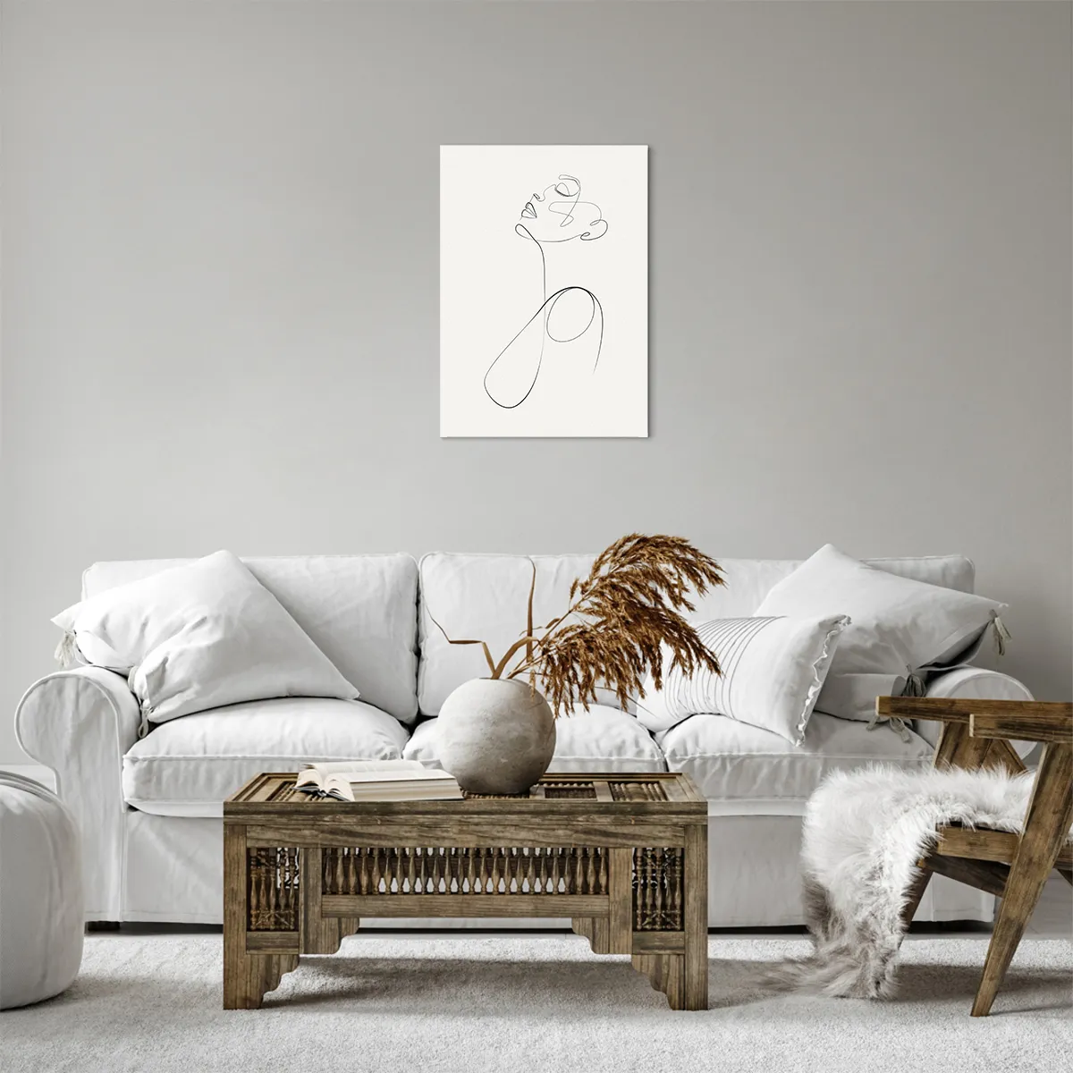 Bild auf Leinwand - Leinwandbild - Minimalistische Strichzeichnung Gesichtsskizze auf weißem Hintergrund - 50x70cm - Versunken in Träumen - Moderne Wanddekoration für Wohnzimmer und Schlafzimmer ARTTOR