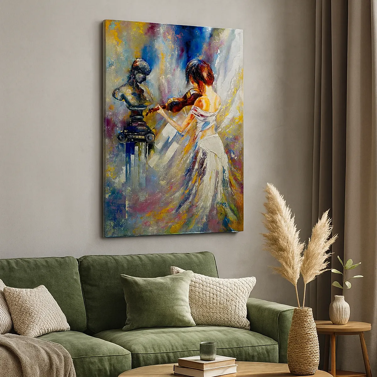 Wir verwenden ökologische, geruchslose und langlebige Tinten mit tiefer Farbsättigung. Durch moderne Drucktechnik wird der Druck präzise platziert, wobei die sichtbare Struktur der Leinwand erhalten bleibt